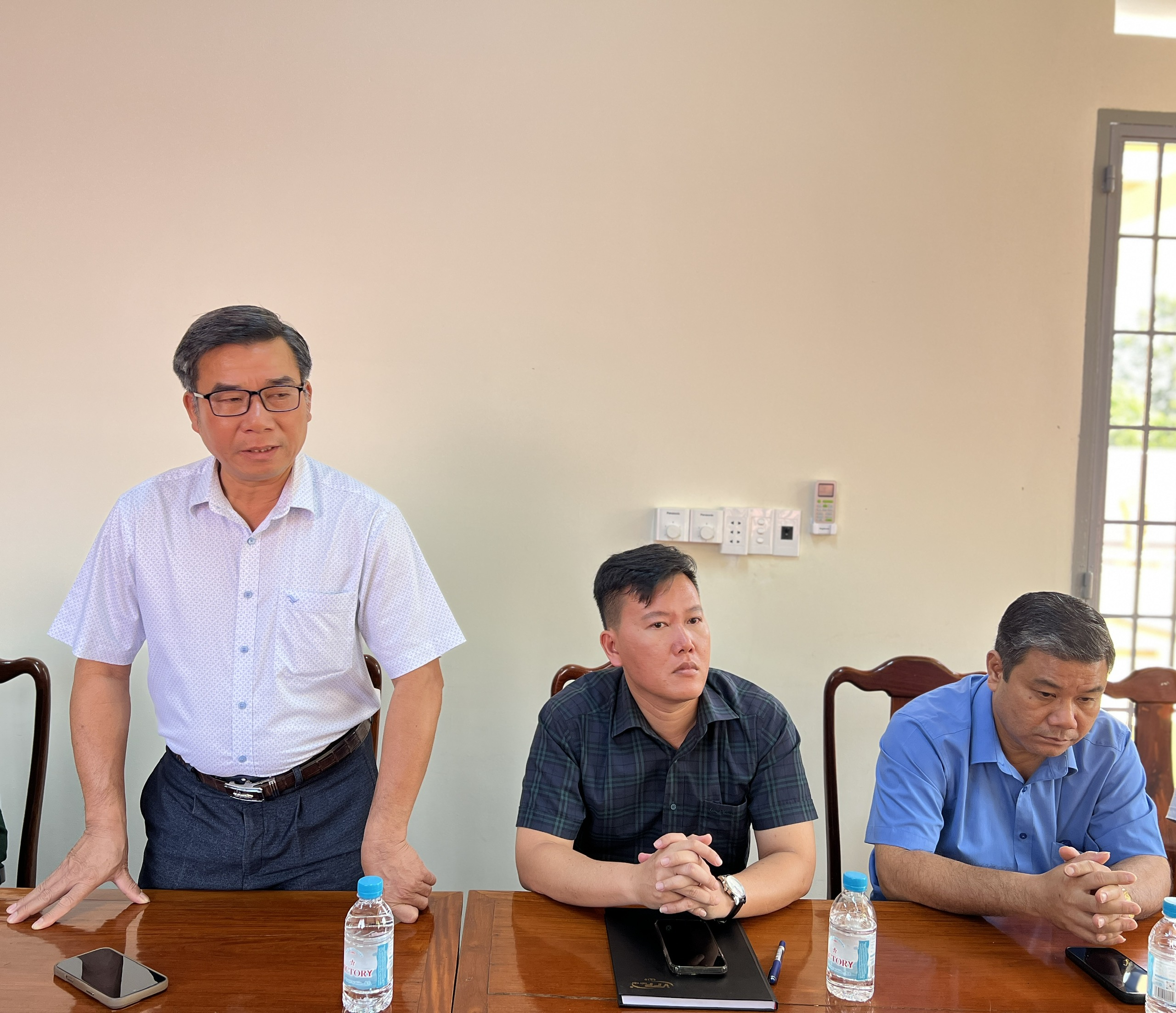Tiếp và làm việc với đoàn có các đồng chí: Trần Hoàng Trực – Tỉnh ủy viên, Bí thư Đảng ủy, Chủ tịch HĐND xã; Nguyễn Thanh Cả – Phó Bí thư Thường trực Đảng ủy; Nguyễn Văn Thảo – Phó Bí thư Đảng ủy, Chủ tịch UBND xã cùng lãnh đạo các cơ quan, đơn vị và lực lượng vũ trang trên địa bàn.