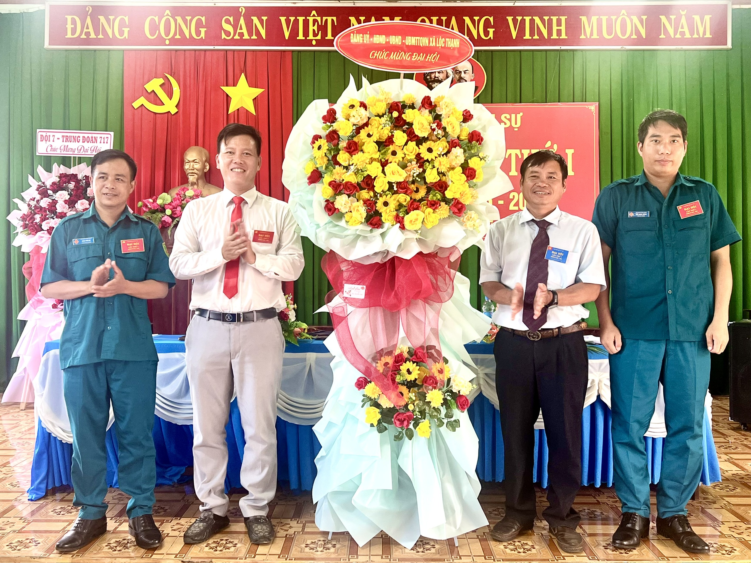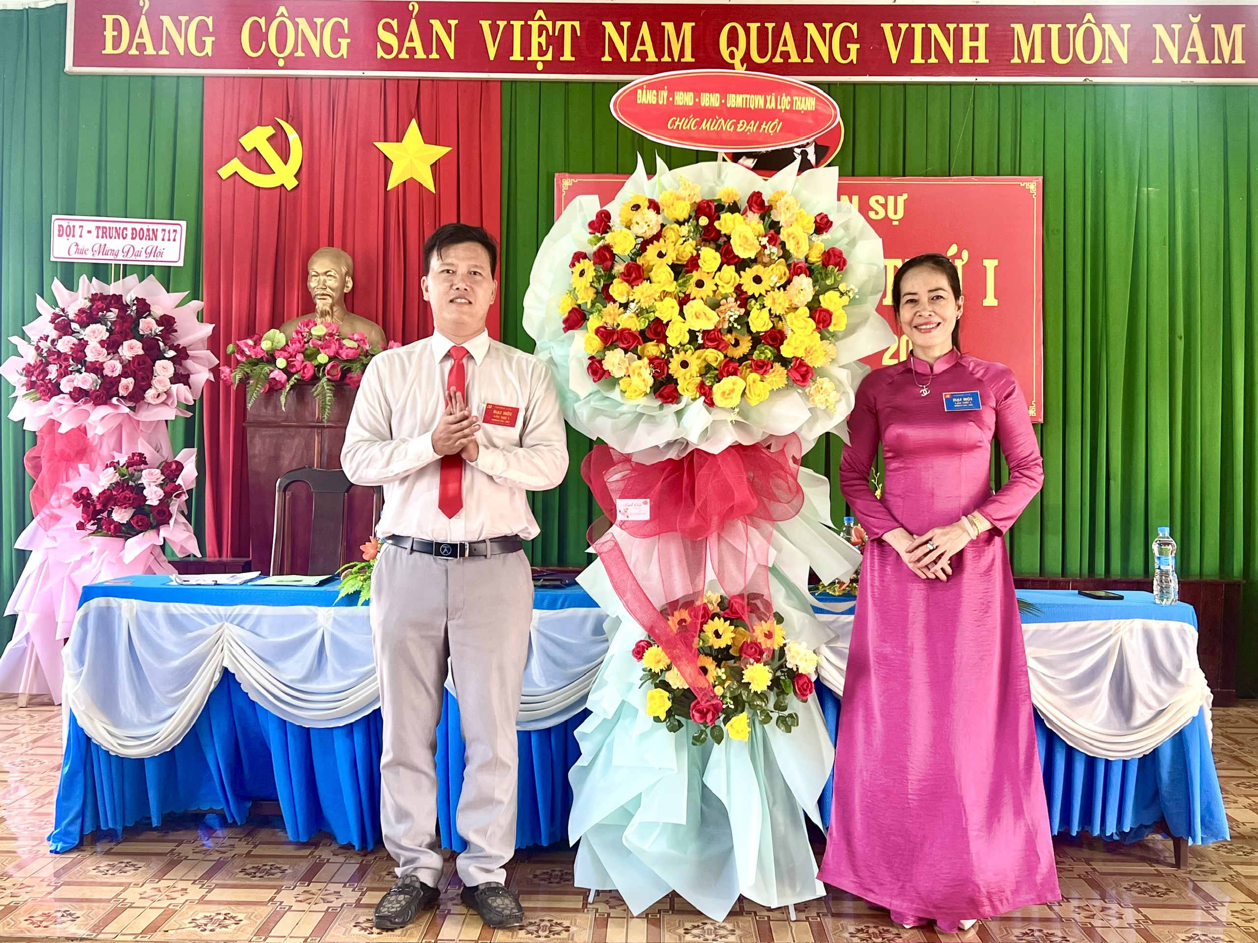 Dịp này, Thường trực Đảng ủy - HĐND - UBND - UBMTTQVN xã Lộc Thạnh đã trao tặng những lẵng hoa chúc mừng Đại hội