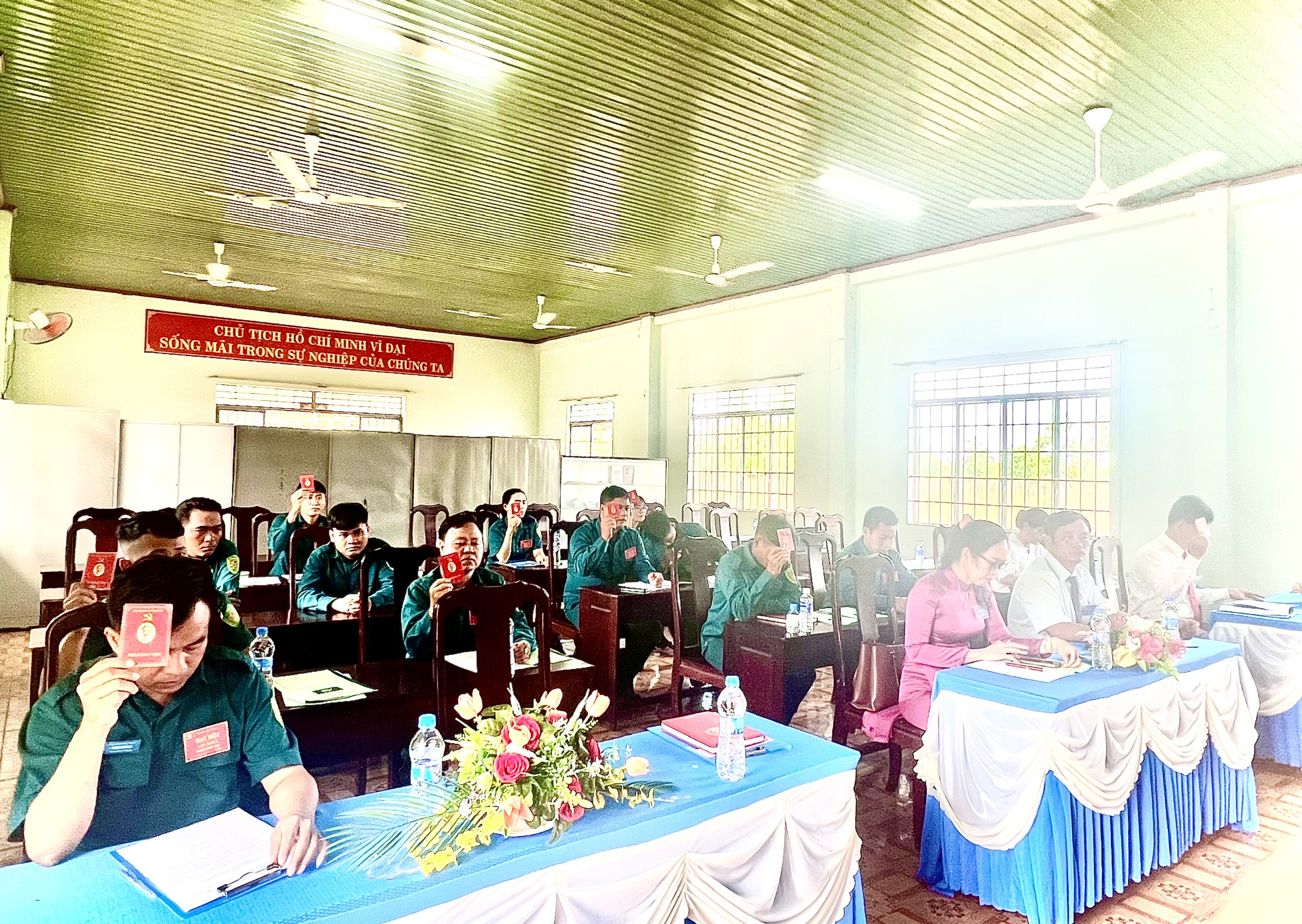 Đoàn Chủ tịch điều hành Đại hội Chi bộ Quân sự xã Lộc Thạnh