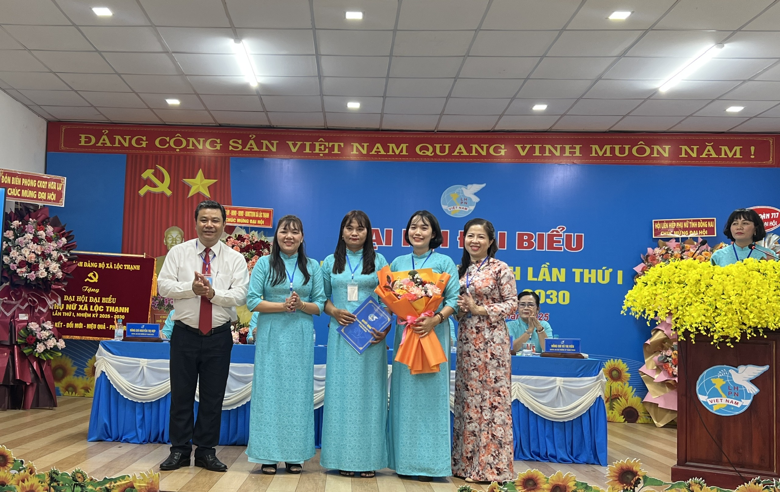 Lãnh đạo xã Lộc Thạnh chúc mừng Ban Chấp hành, Ủy ban kiểm tra Hội LHPN xã Lộc Thạnh khóa I và 2 đại biểu chính thức dự Đại hội đại biểu Phụ nữ tỉnh