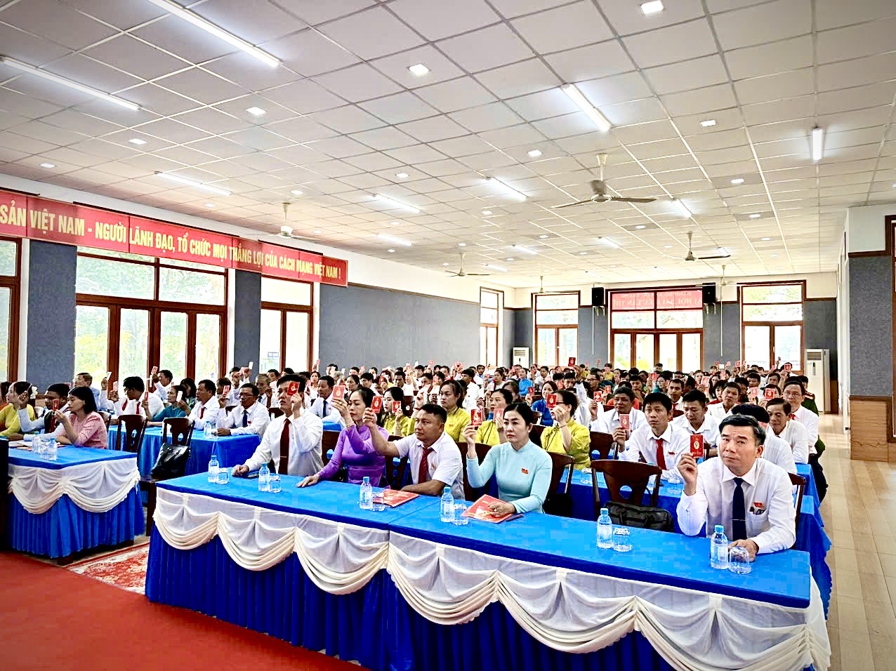 Điểm mới của Đại hội lần này là ứng dụng chuyển đổi số trong công tác tổ chức, bao gồm: quét mã QR để điểm danh đại biểu, tải ứng dụng điện tử để nhận tài liệu và tra cứu vị trí chỗ ngồi nhanh chóng, thuận tiện. Việc này giúp tiết kiệm thời gian, nâng cao hiệu quả tổ chức và tạo sự hiện đại, chuyên nghiệp cho Đại hội.