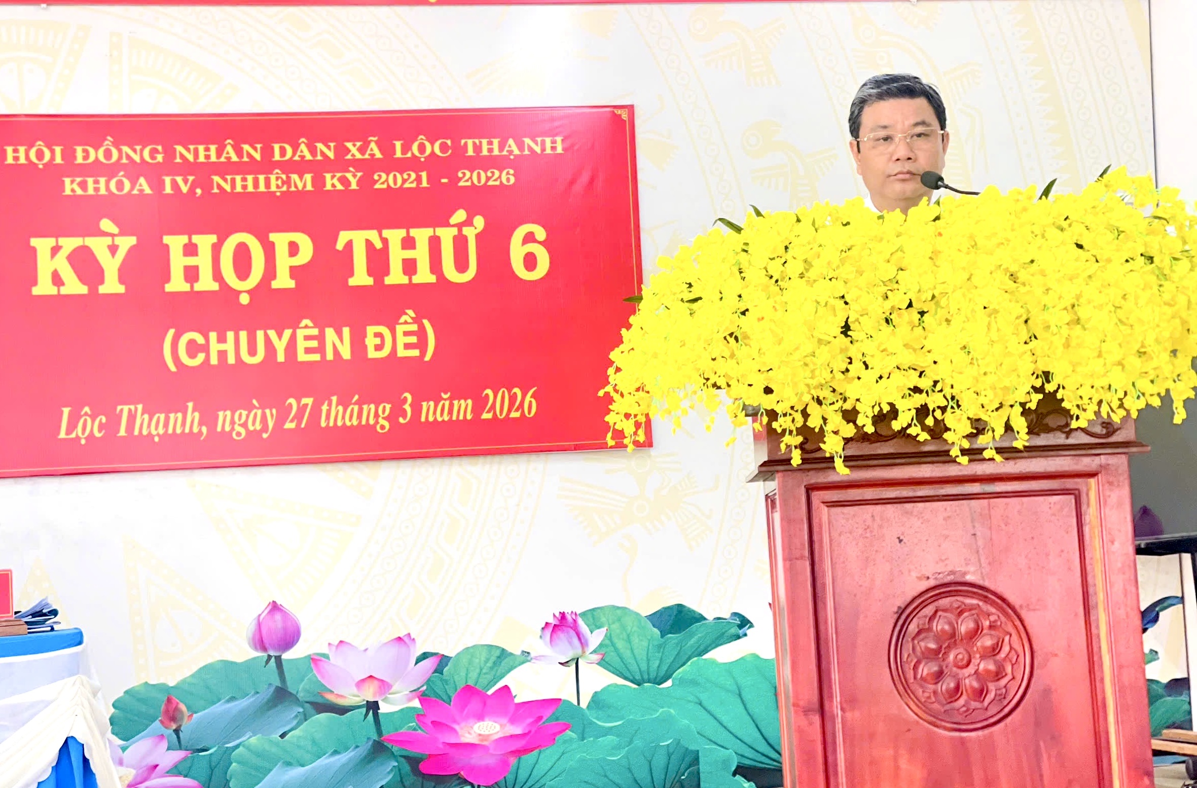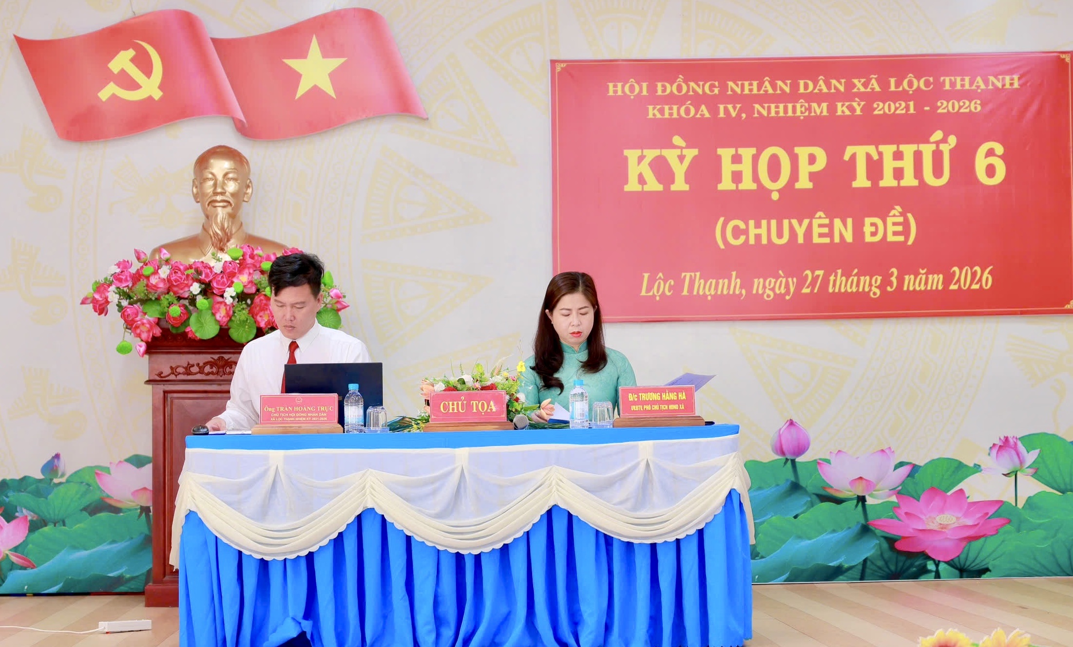 Sáng ngày 27-3-2026, HĐND xã Lộc Thạnh khóa IV, nhiệm kỳ 2021-2026 tổ chức kỳ họp thứ 6 (chuyên đề). Ông Trần Hoàng Trực, Chủ tịch HĐND xã và bà Trương Hằng Hà, Phó Chủ tịch HĐND xã chủ tọa kỳ họp.