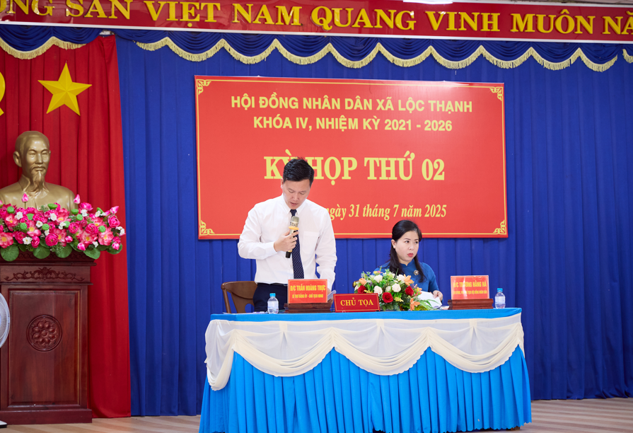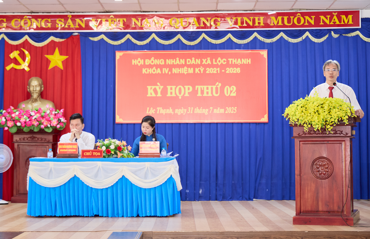 Căn cứ Luật Tổ chức Chính quyền địa phương năm 2025; thực hiện Nghị quyết số 01/NQ-HĐND ngày 01/7/2025 của Hội đồng nhân dân (HĐND) xã Lộc Thạnh khóa IV, nhiệm kỳ 2021-2026 năm 2025; được sự chấp thuận của Ban Thường vụ Đảng ủy xã; trên cơ sở kết quả Hội nghị liên tịch giữa Thường trực HĐND xã với Ủy ban nhân dân (UBND), Ban Thường trực Ủy ban Mặt trận Tổ quốc (MTTQ) Việt Nam xã, sáng ngày 31/7/2025, tại Hội trường Nhà Văn hóa xã Lộc Thạnh, HĐND xã long trọng tổ chức kỳ họp thứ 2 (kỳ họp thường lệ giữa năm 2025). Đây là kỳ họp có ý nghĩa quan trọng, được tổ chức trong bối cảnh hệ thống chính trị xã Lộc Thạnh vừa được kiện toàn sau khi sáp nhập hai xã Lộc Thạnh và Lộc Hòa.
