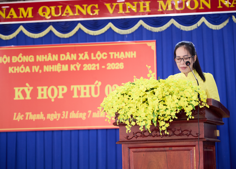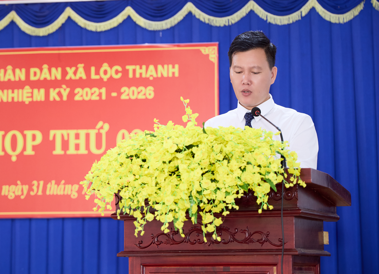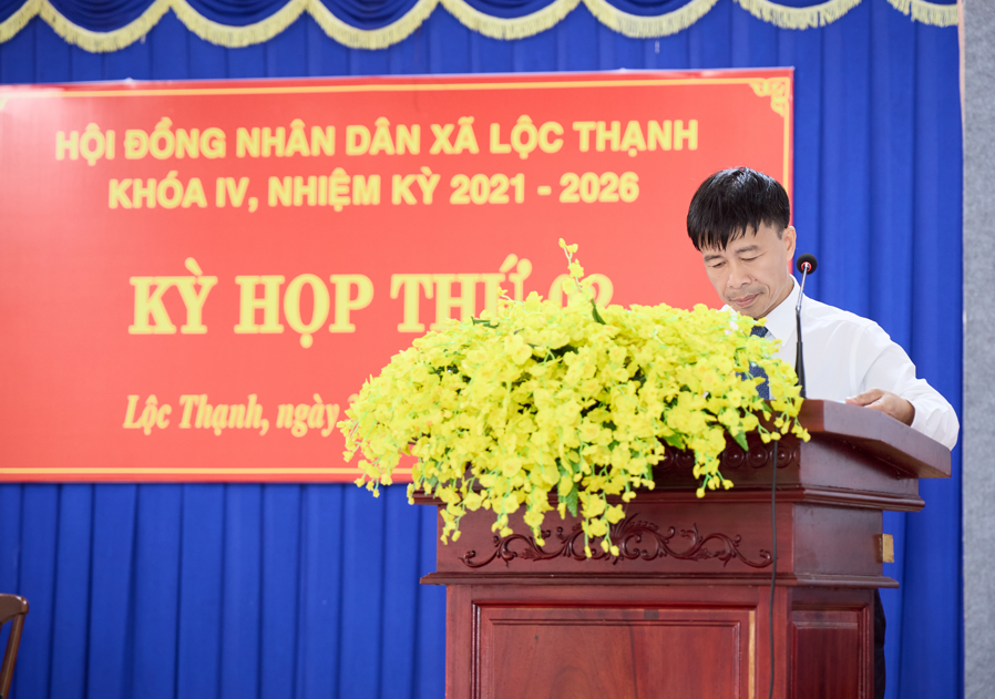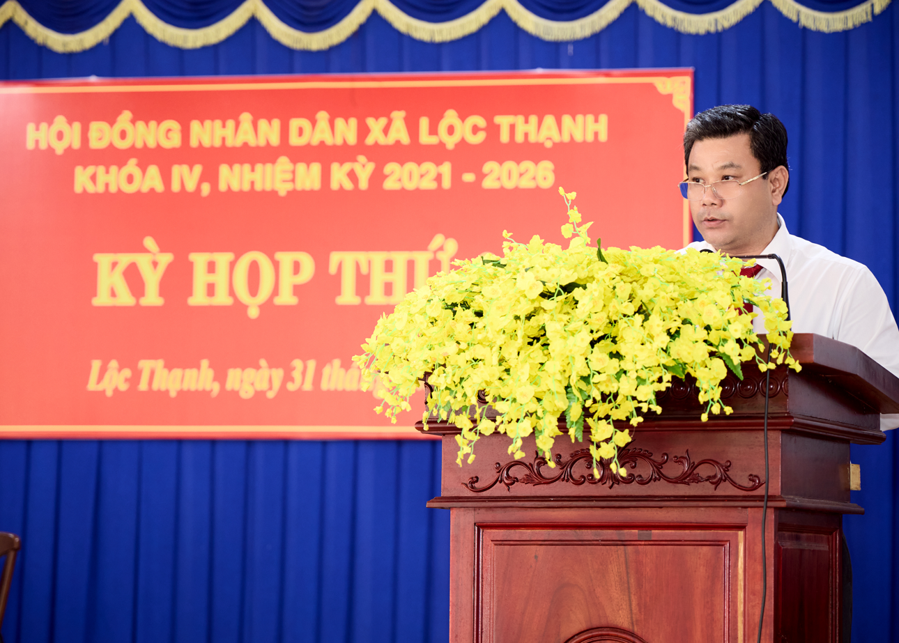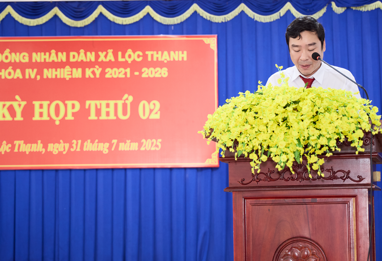 Phát biểu tại kỳ họp, thay mặt Thường trực Đảng ủy xã, Phó Bí thư Thường trực Đảng ủy Nguyễn Thanh Cả biểu dương, ghi nhận, đánh giá cao những nỗ lực, cố gắng, sự chủ động, tập trung cao độ để chuẩn bị tốt về nội dung, hình thức cho kỳ họp trong thời gian chưa đầy một tháng, trong điều kiện còn nhiều khó khăn về cơ sở vật chất, nhân sự của xã. Phó Bí thư Thường trực Đảng ủy Nguyễn Thanh Cả nhấn mạnh: “Trong thời gian tới, HĐND xã cần phát huy hơn nữa vai trò quyết định những vấn đề quan trọng của địa phương, đặc biệt quan tâm các vấn đề liên quan đến việc ổn định và phát triển xã Lộc Thạnh sau sáp nhập; nâng cao hiệu quả hoạt động giám sát, nhất là việc giải quyết các kiến nghị của cử tri về đất đai, giao thông, môi trường, an sinh xã hội; kiện toàn tổ chức và đổi mới phương thức hoạt động, phát huy vai trò của các Ban và Tổ đại biểu trong việc đại diện cho ý chí, nguyện vọng của Nhân dân. Thường trực, các Ban của HĐND xã cần tăng cường mối quan hệ phối hợp với UBND, Ban Thường trực Ủy ban MTTQ Việt Nam xã và các cơ quan, đoàn thể trong việc thực hiện nhiệm vụ, quyền hạn, đảm bảo sự đồng bộ, thống nhất trong chỉ đạo, điều hành và tổ chức thực hiện, chuẩn bị chu đáo cho Đại hội Đảng bộ xã, Cuộc bầu cử đại biểu Quốc hội khóa XVI và đại biểu HĐND các cấp nhiệm kỳ 2026-2031”.
