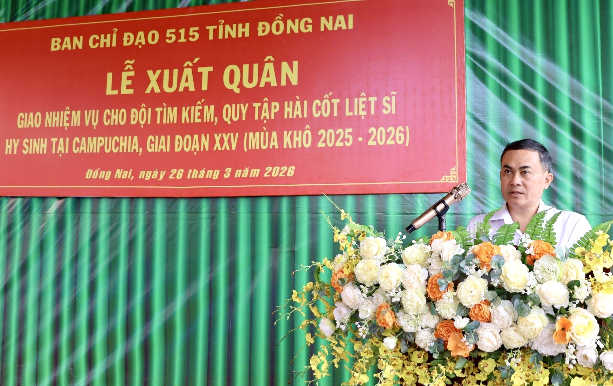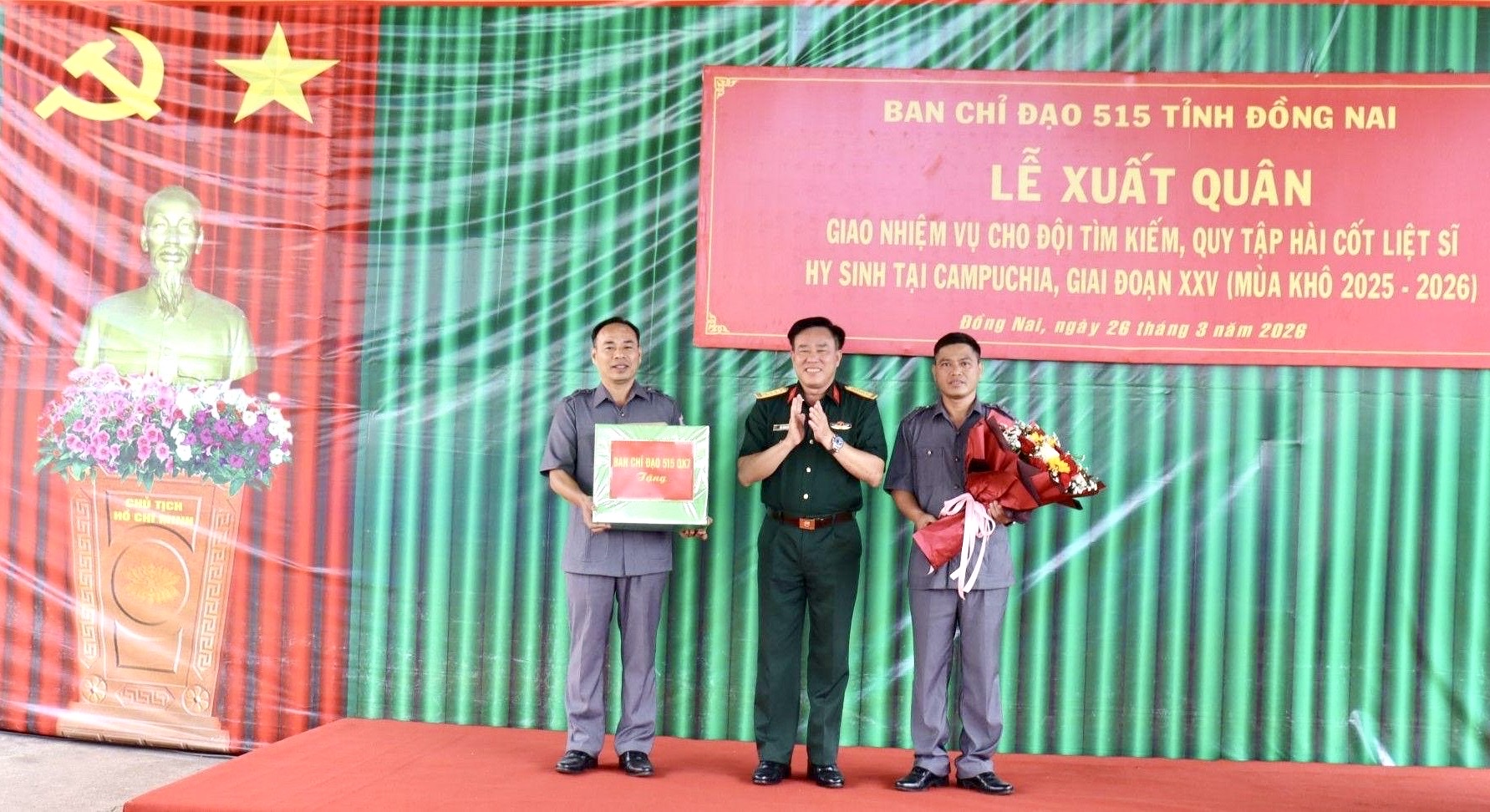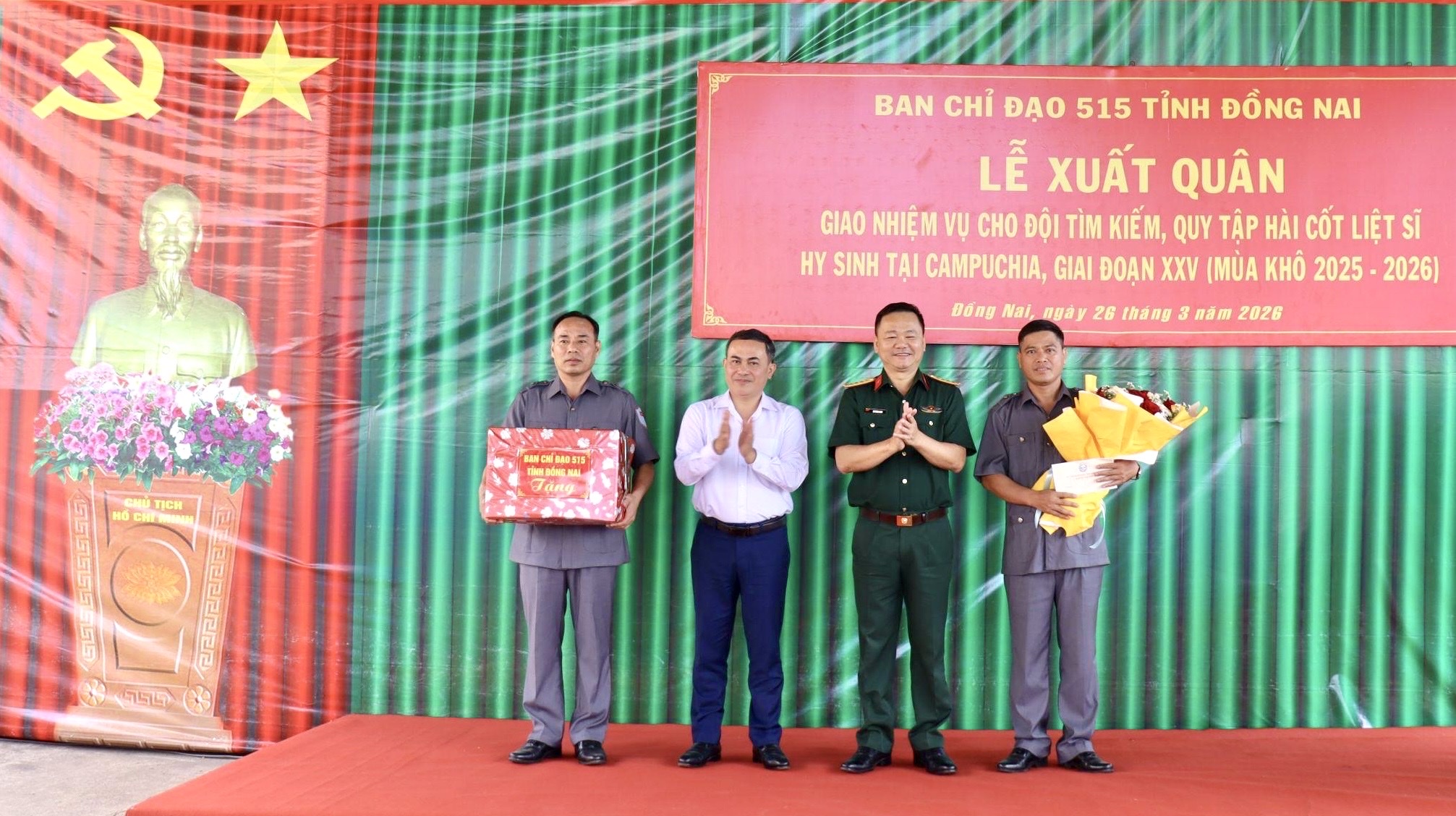 Sáng ngày 26-3-2026, tại Cửa khẩu quốc tế Hoa Lư, xã Lộc Thạnh, Ban Chỉ đạo 515 Quân khu 7 và tỉnh Đồng Nai tổ chức Lễ xuất quân giao nhiệm vụ cho Đội K72 (Bộ Chỉ huy Quân sự tỉnh Đồng Nai) thực hiện nhiệm vụ tìm kiếm, quy tập hài cốt liệt sĩ hy sinh tại Campuchia, giai đoạn XXV (mùa khô 2025–2026).