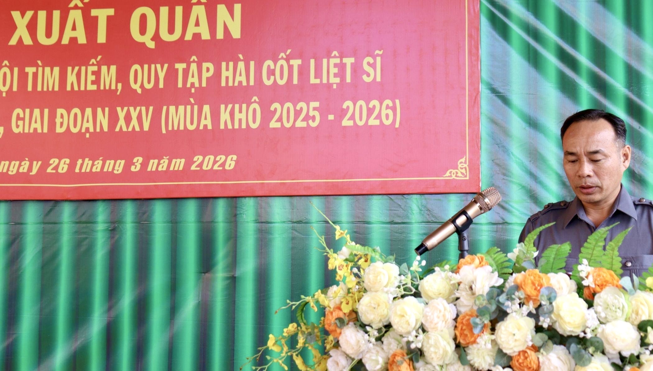 Phát biểu tại buổi lễ, đồng chí Lê Trường Sơn biểu dương tinh thần, trách nhiệm của Đội K72 trong thời gian qua; đồng thời đề nghị đơn vị tiếp tục quán triệt nhiệm vụ, rà soát kỹ từng khu vực, tổ chức tìm kiếm hiệu quả, đưa hài cốt liệt sĩ về nước. Bên cạnh đó, cần giữ vững mối quan hệ đoàn kết, hữu nghị, phối hợp chặt chẽ với chính quyền và lực lượng chức năng các tỉnh Kratie và Kampong Thom (Vương quốc Campuchia), góp phần hoàn thành tốt nhiệm vụ chính trị được giao.