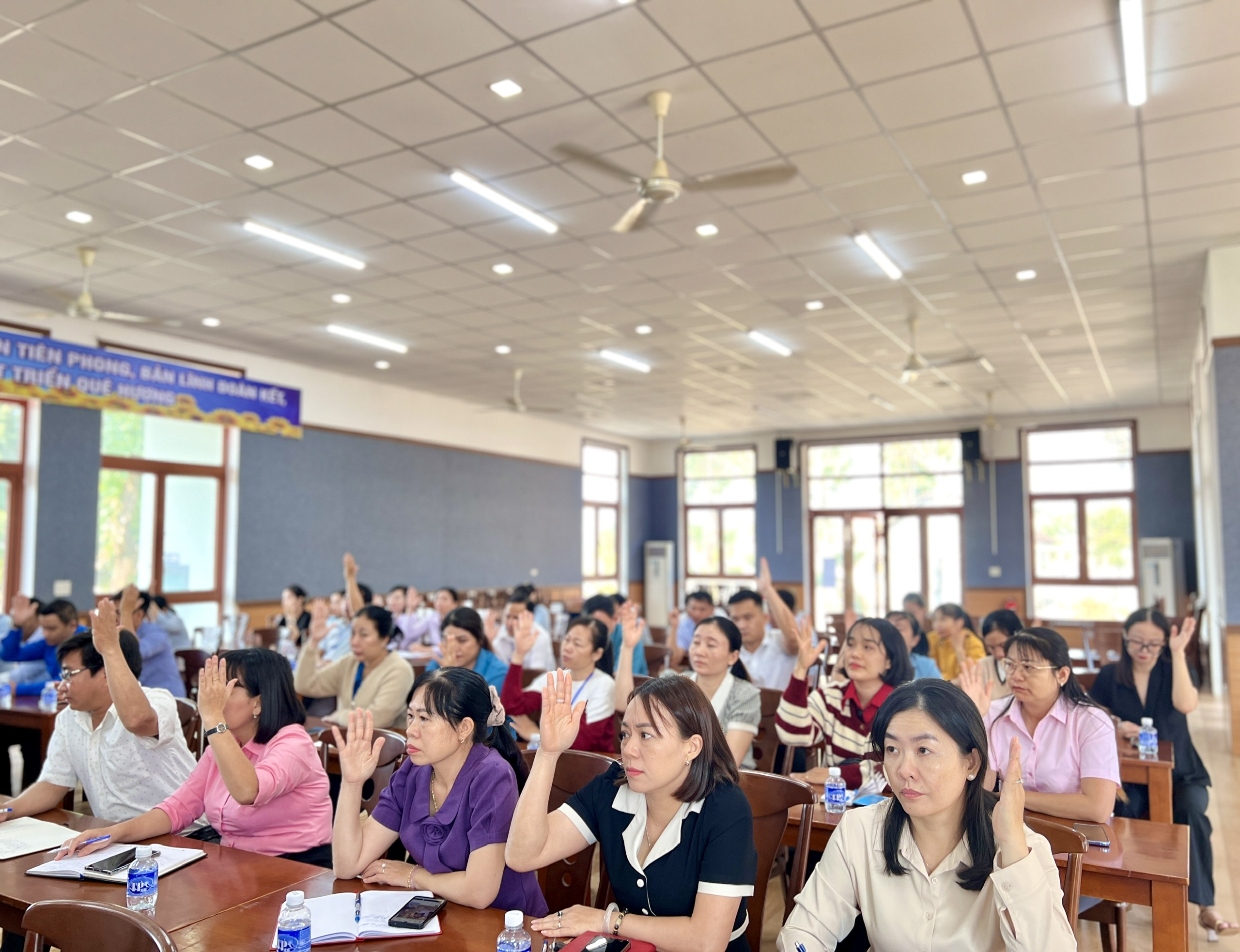 100% cử tri tham dự hội nghị thống nhất cao với danh sách được giới thiệu.