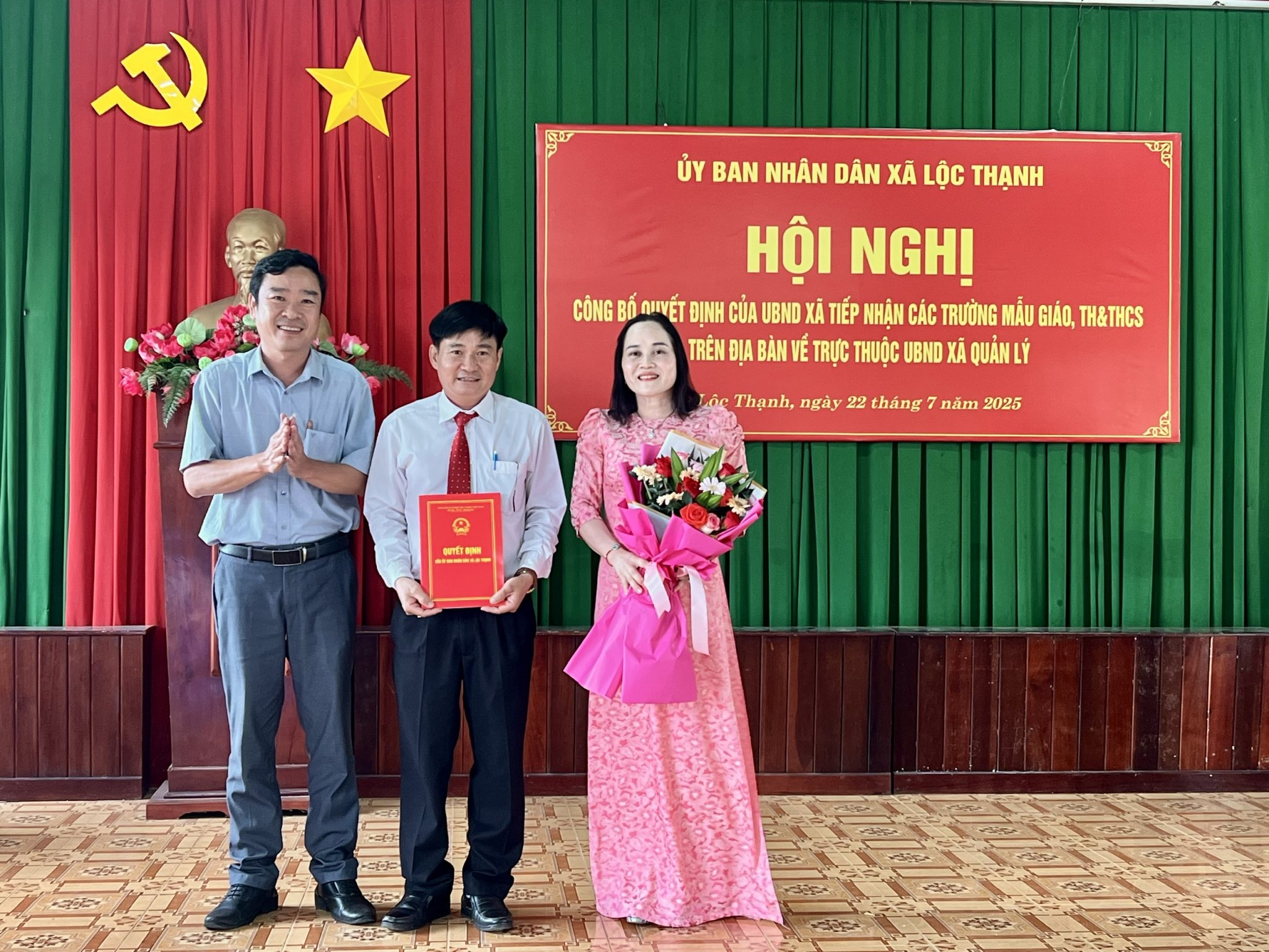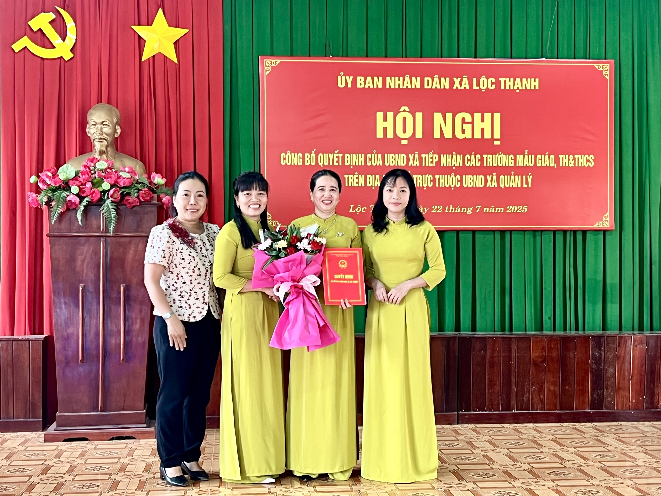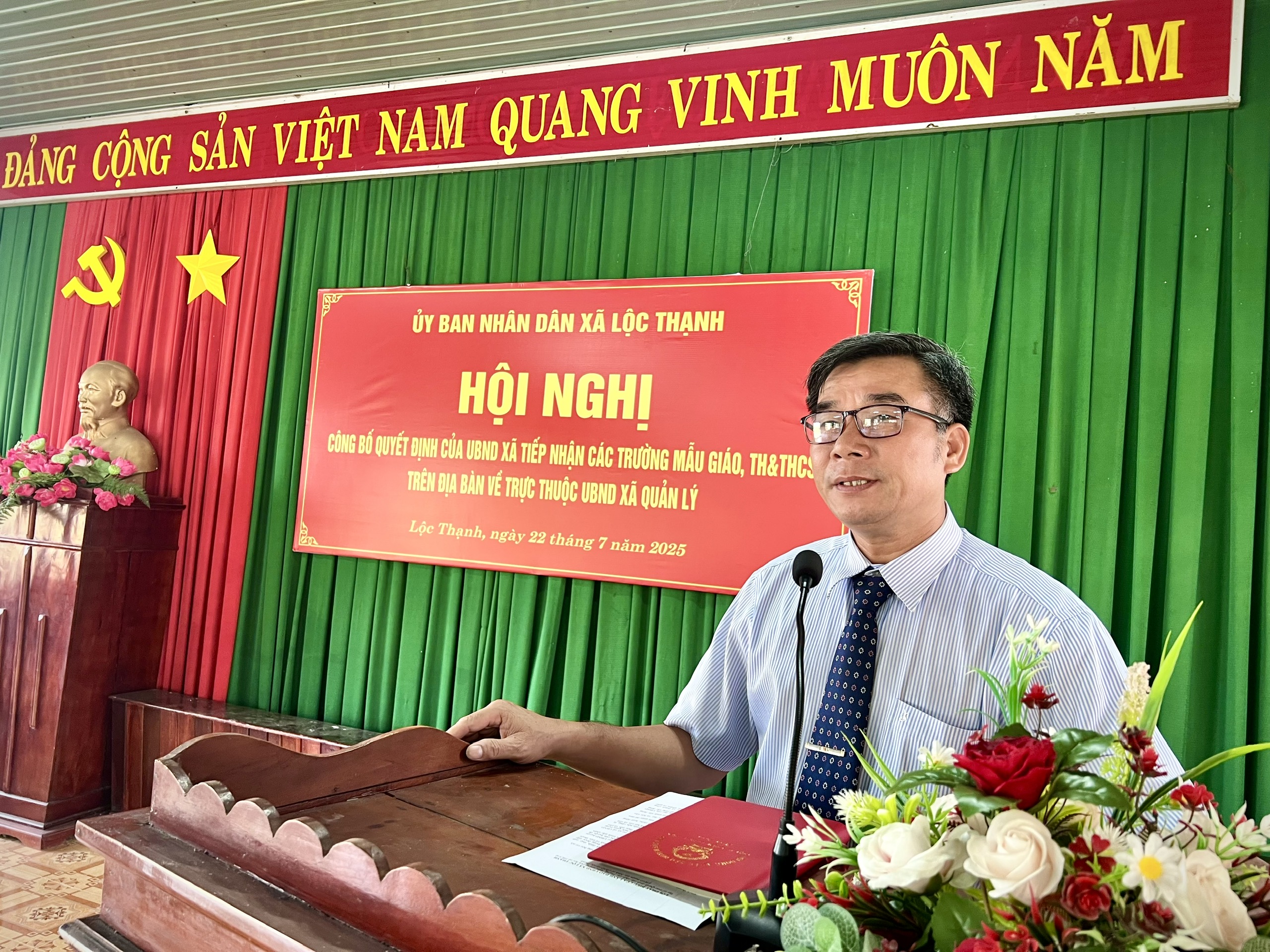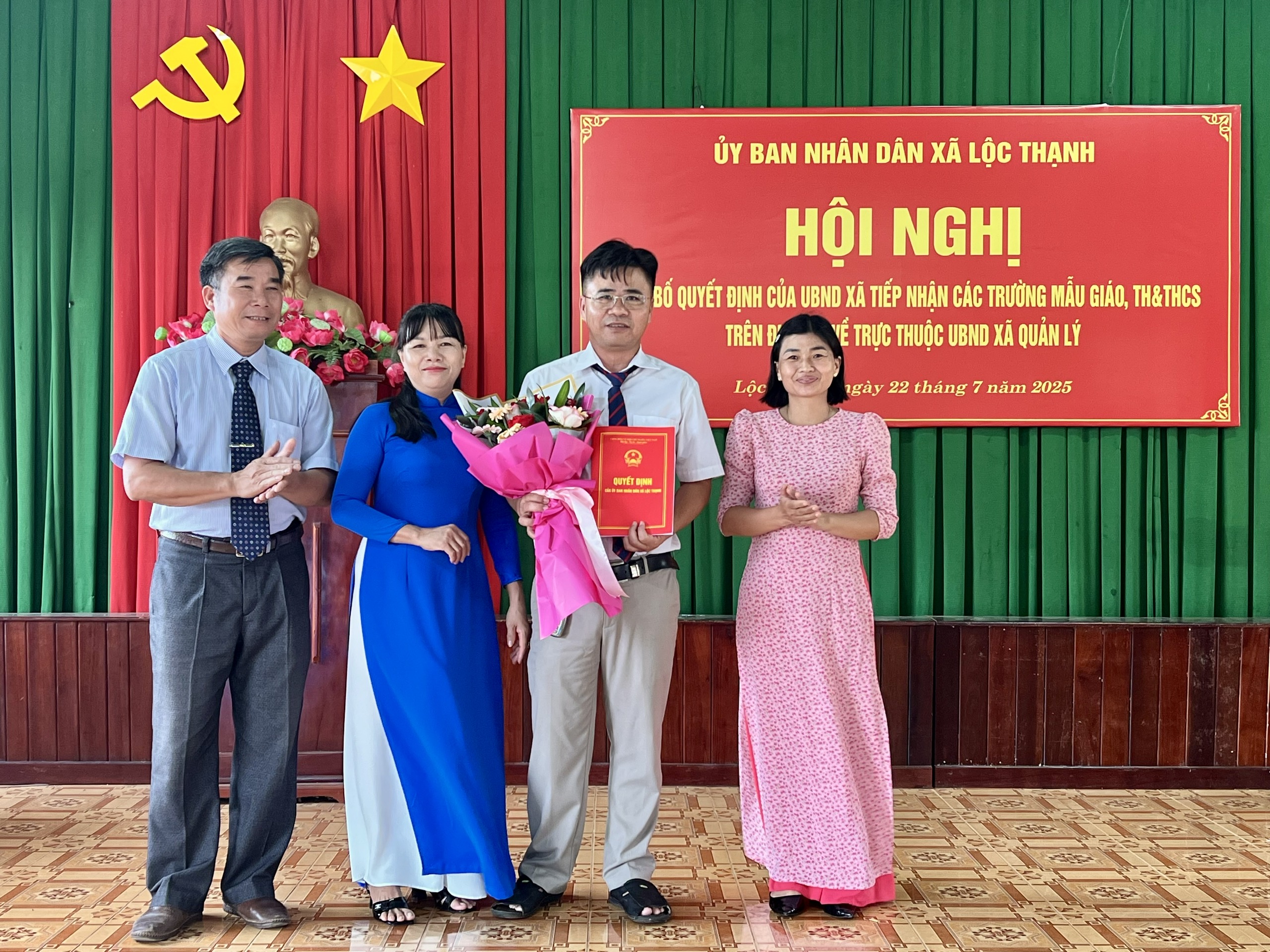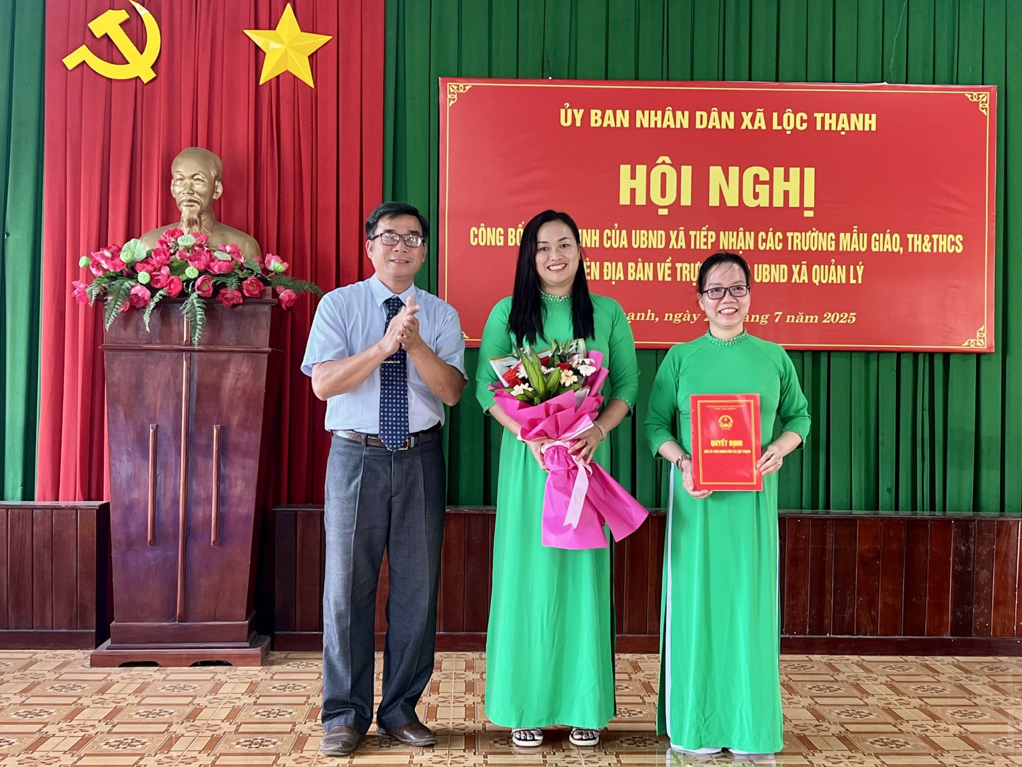 Chiều ngày 22/7, UBND xã Lộc Thạnh đã tổ chức hội nghị công bố và trao quyết định tiếp nhận toàn bộ hệ thống các trường Mẫu giáo, Tiểu học và Trung học cơ sở từ cấp huyện về cho UBND xã trực tiếp quản lý.