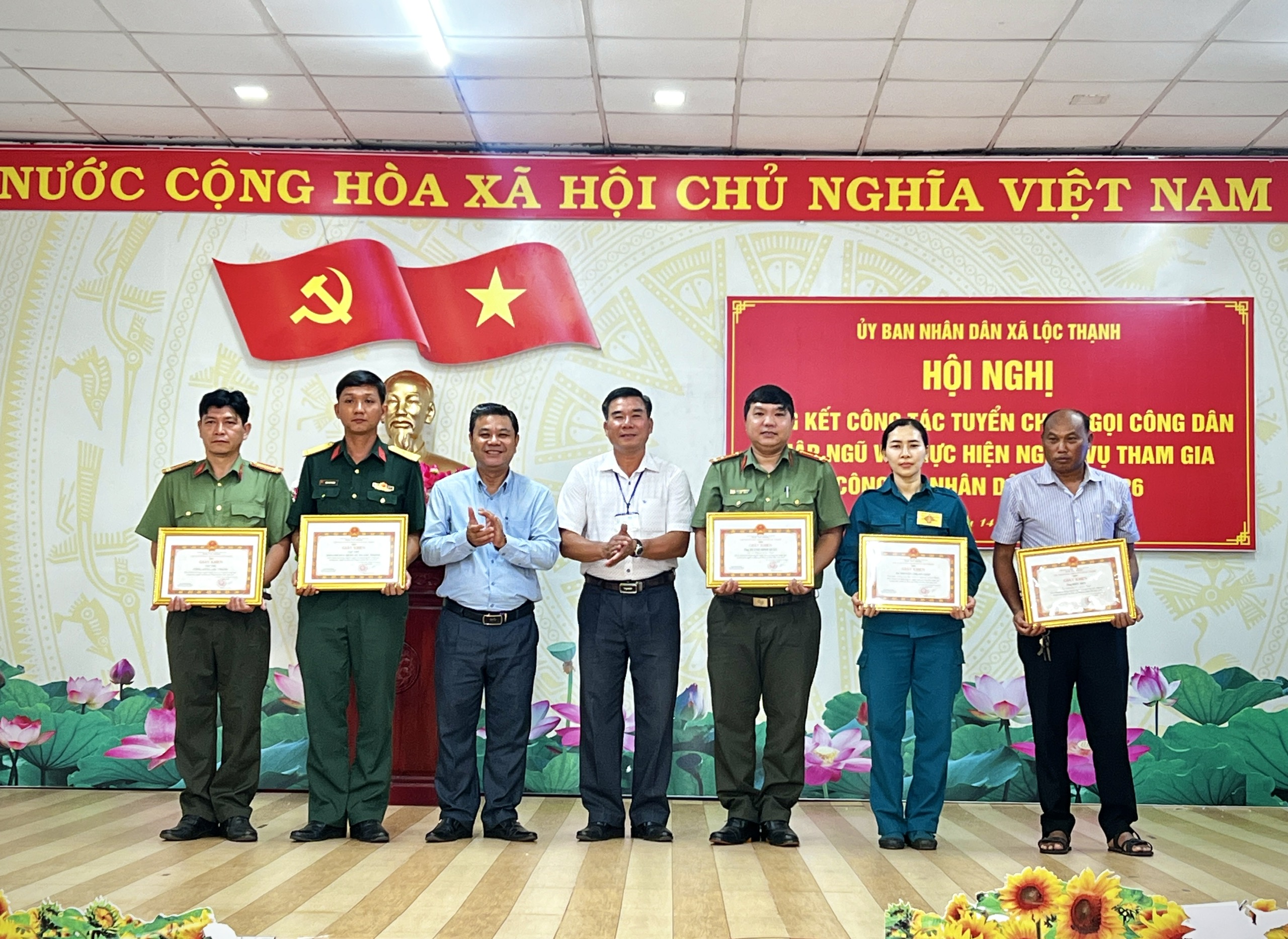 Dịp này, UBND xã Lộc Thạnh khen thưởng 5 tập thể, cá nhân có thành tích xuất sắc trong công tác tuyển quân năm 2026.