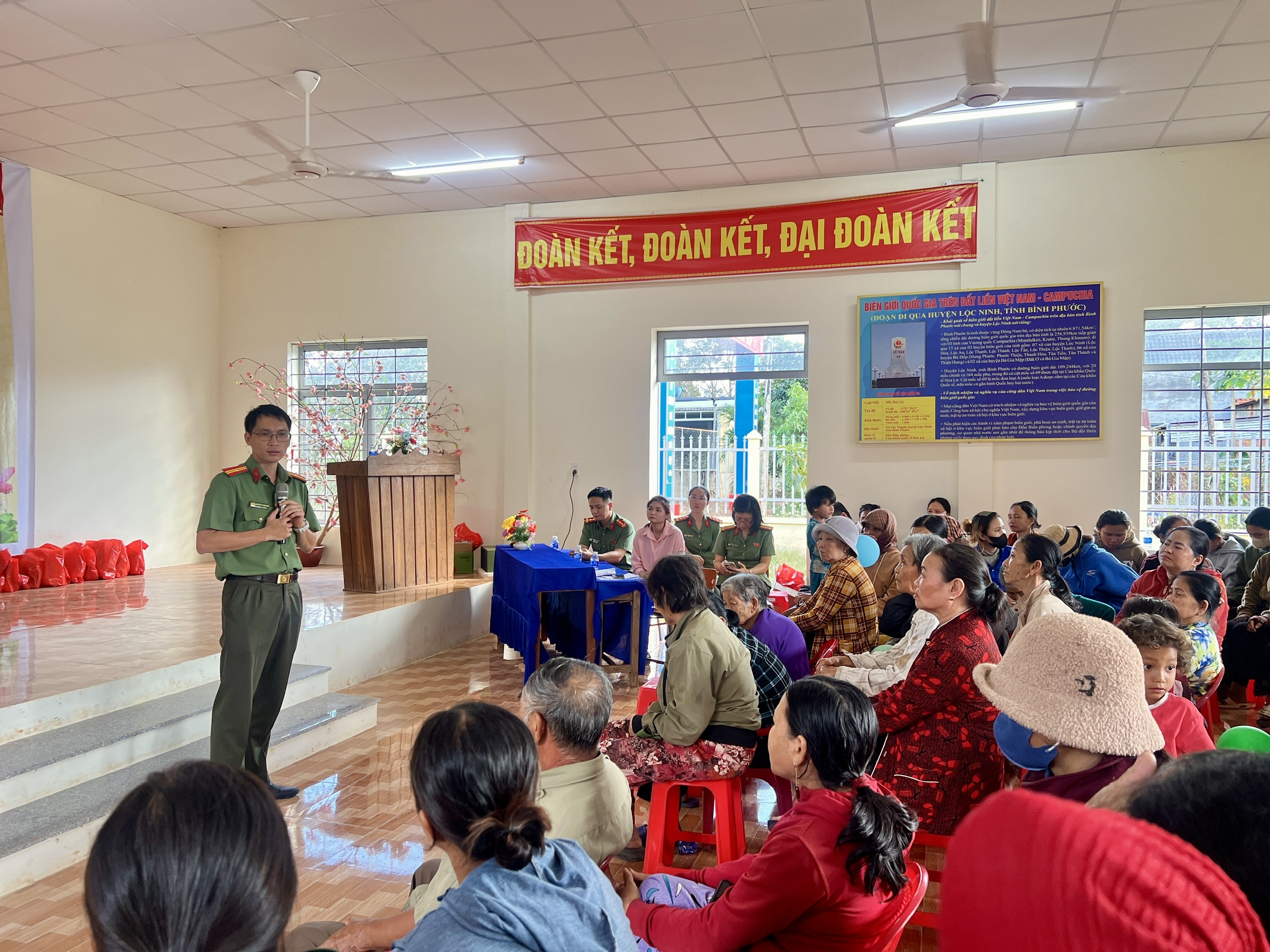 Song song với hoạt động an sinh, lực lượng Công an đã tổ chức tuyên truyền, phổ biến pháp luật, phát tờ rơi về xuất nhập cảnh, cư trú, an ninh mạng; đồng thời thông tin, cảnh báo về rủi ro, hậu quả của việc xuất nhập cảnh trái phép sang Campuchia tìm kiếm việc làm. Qua đó, giúp cán bộ và Nhân dân nâng cao hiểu biết, ý thức chấp hành pháp luật, góp phần giữ vững an ninh trật tự nói chung và lĩnh vực xuất nhập cảnh nói riêng trên địa bàn.