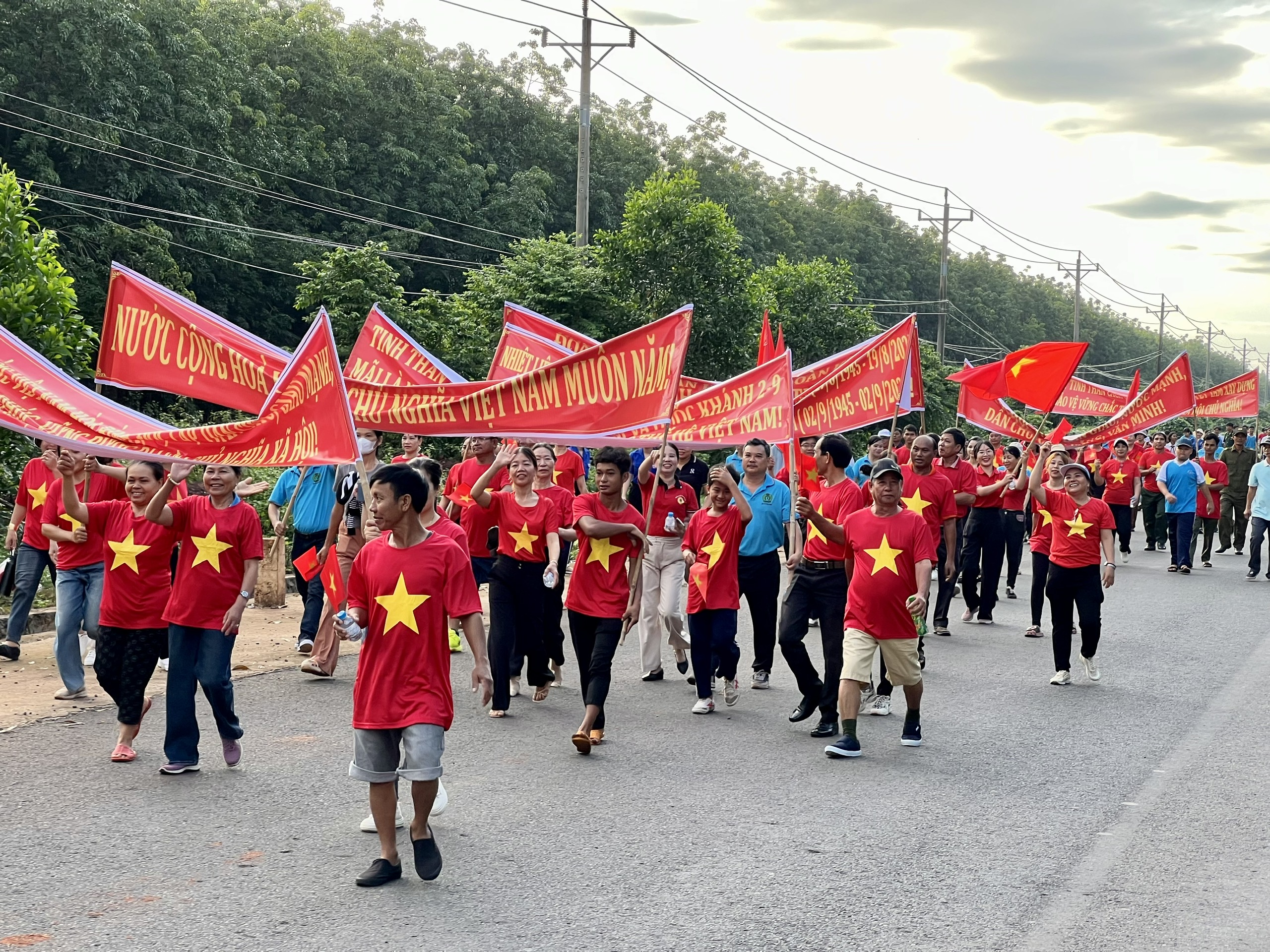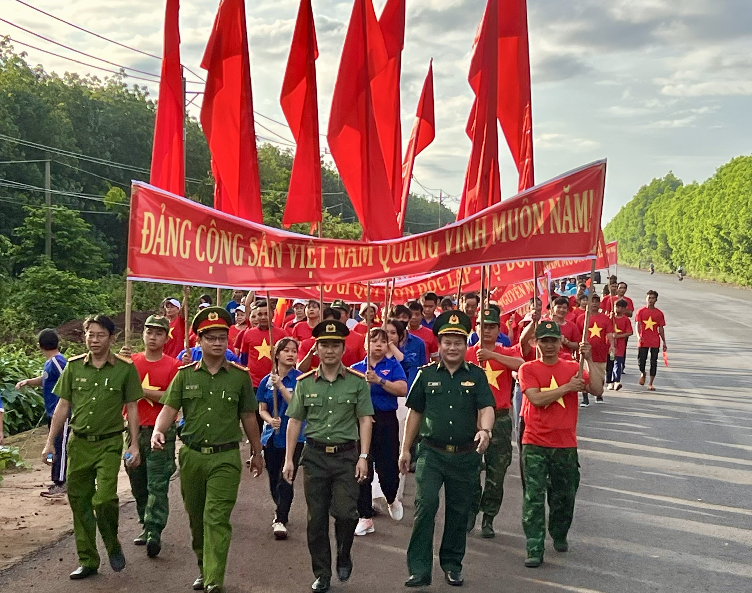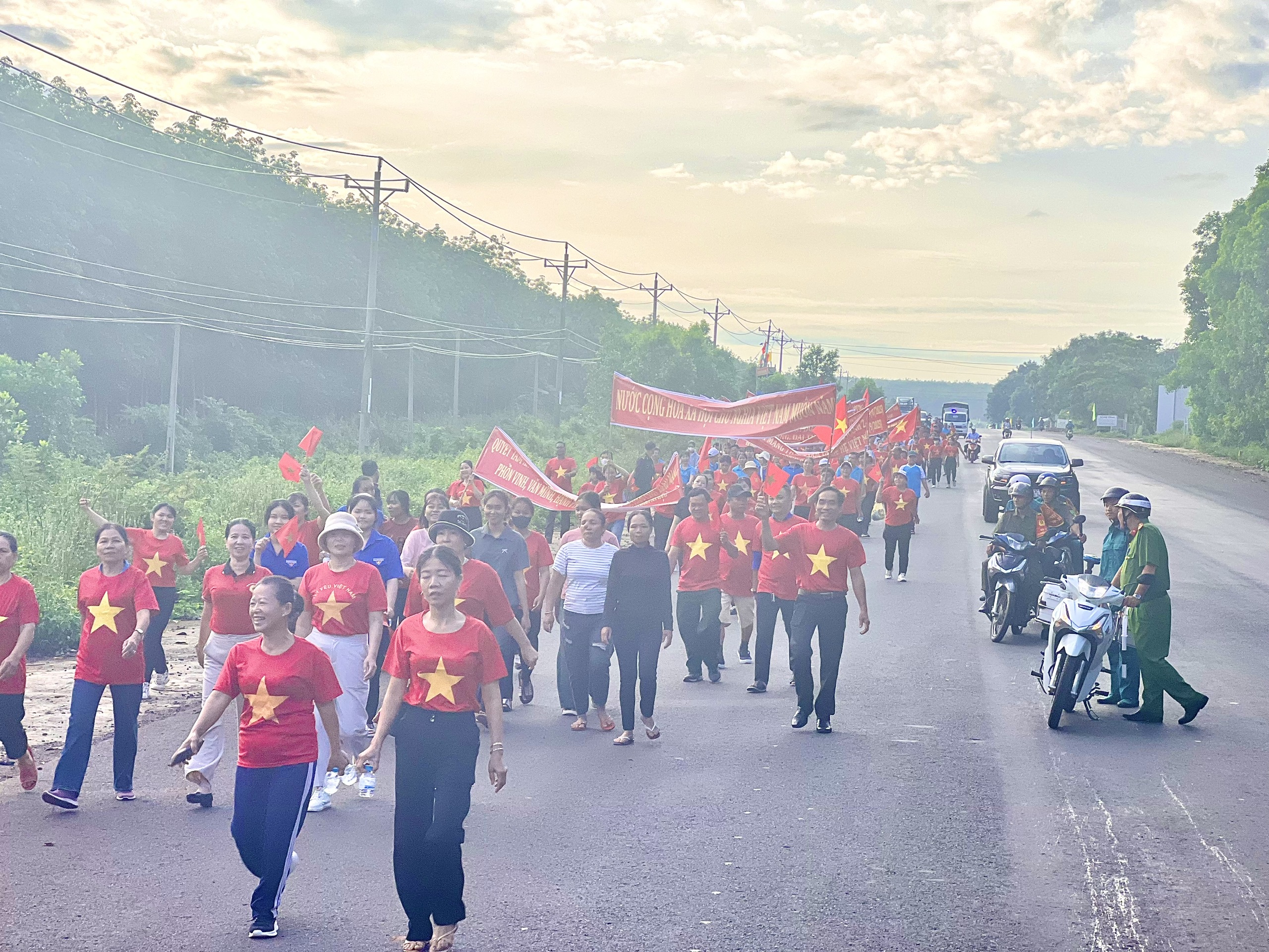 Ngay sau đó, hơn 300 cán bộ, công chức, viên chức và nhân dân- nơi có hơn 34% là đồng bào dân tộc thiểu số, đã cùng hòa mình trong sắc cờ đỏ sao vàng, băng rôn, khẩu hiệu, tham gia diễu hành đi bộ hưởng ứng. Đoàn diễu hành xuất phát từ trụ sở UBND xã theo Quốc lộ 13 hướng về Cửa khẩu quốc tế Hoa Lư, với quãng đường khoảng 3 km.