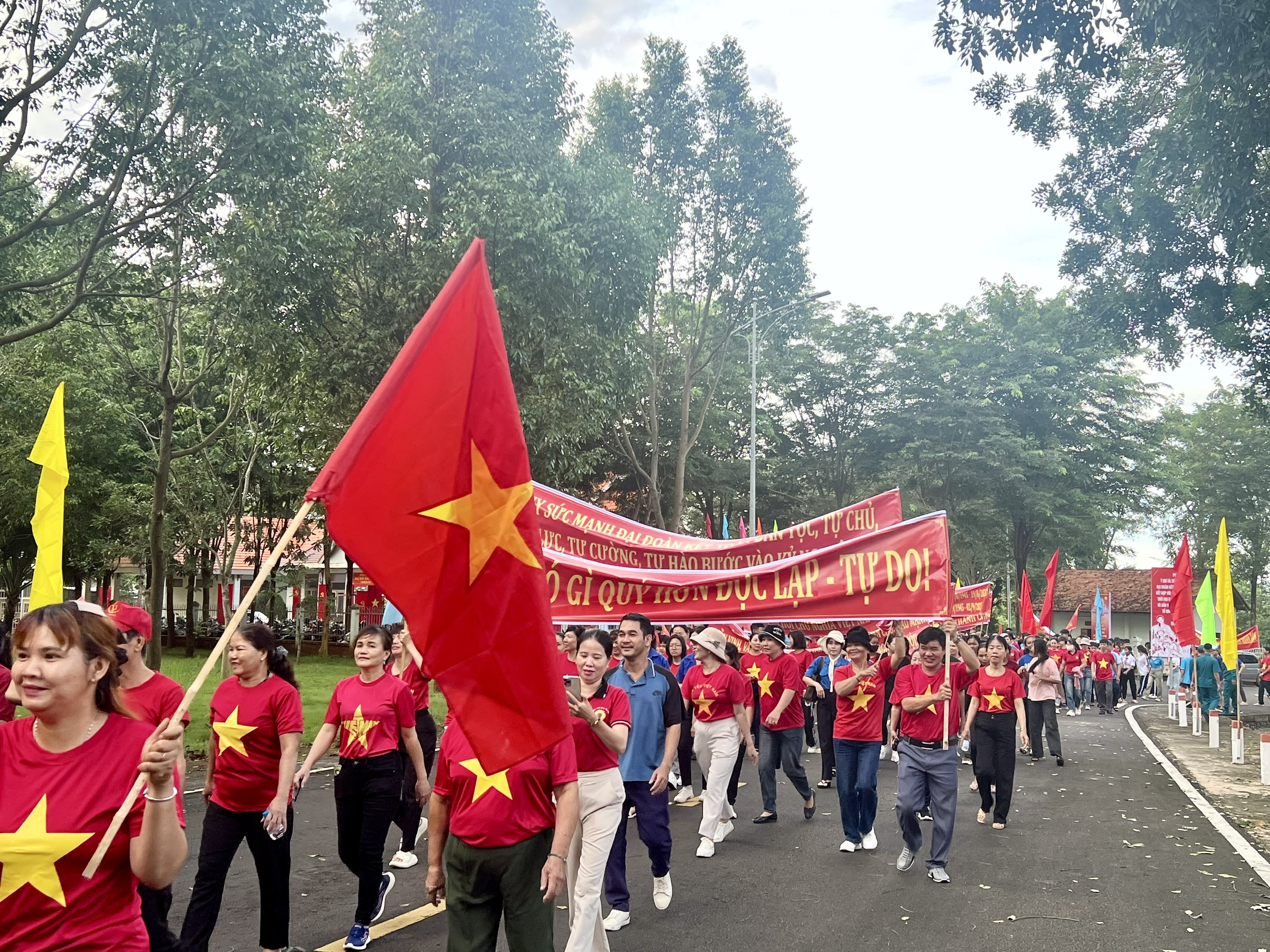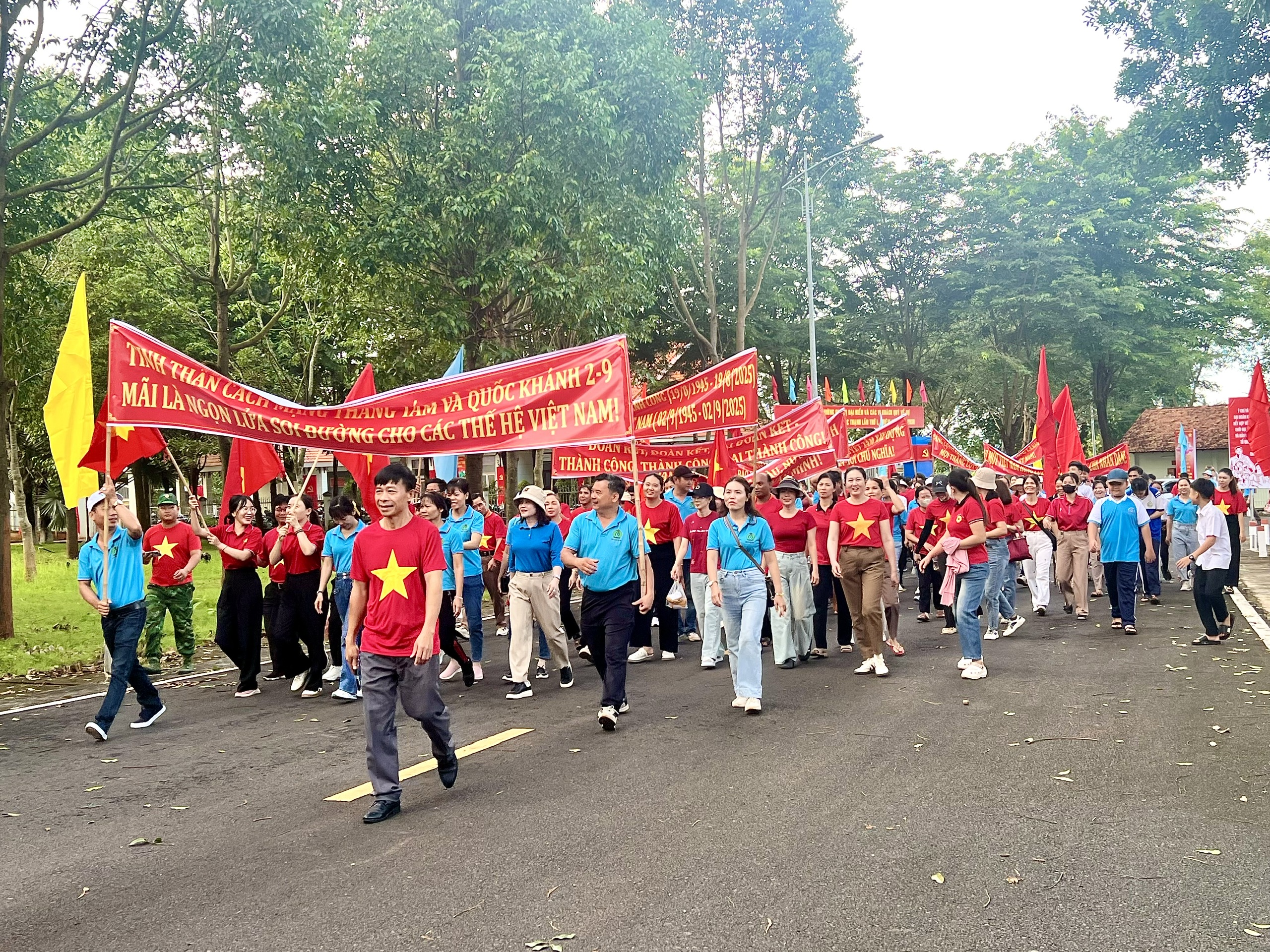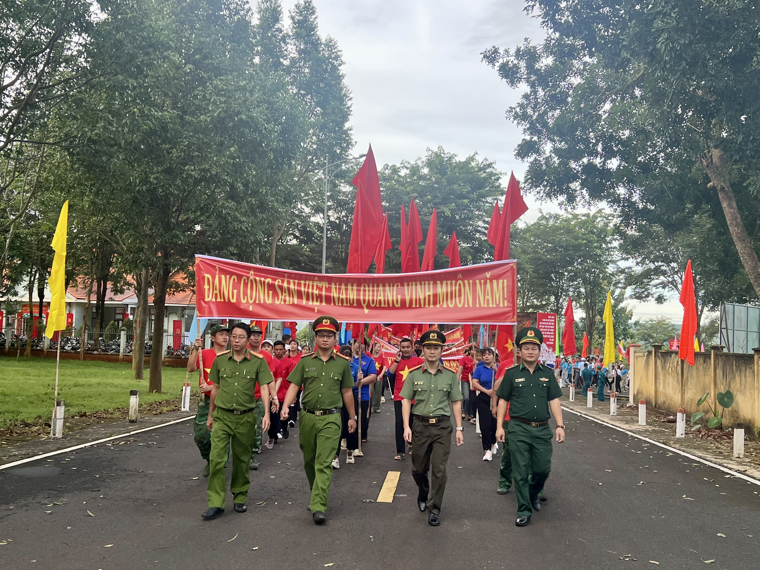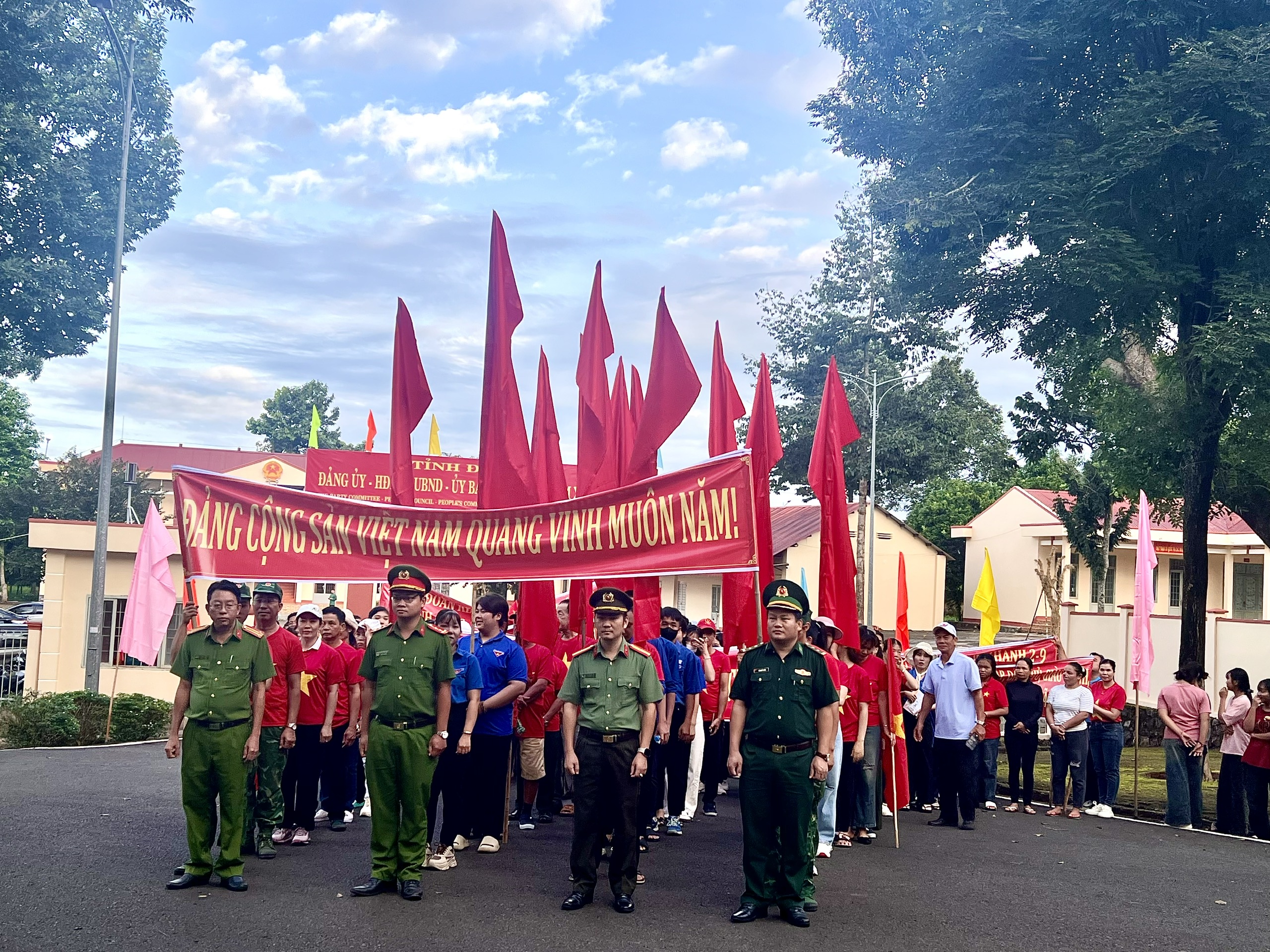 Ngay sau đó, hơn 300 cán bộ, công chức, viên chức và nhân dân- nơi có hơn 34% là đồng bào dân tộc thiểu số, đã cùng hòa mình trong sắc cờ đỏ sao vàng, băng rôn, khẩu hiệu, tham gia diễu hành đi bộ hưởng ứng. Đoàn diễu hành xuất phát từ trụ sở UBND xã theo Quốc lộ 13 hướng về Cửa khẩu quốc tế Hoa Lư, với quãng đường khoảng 3 km.