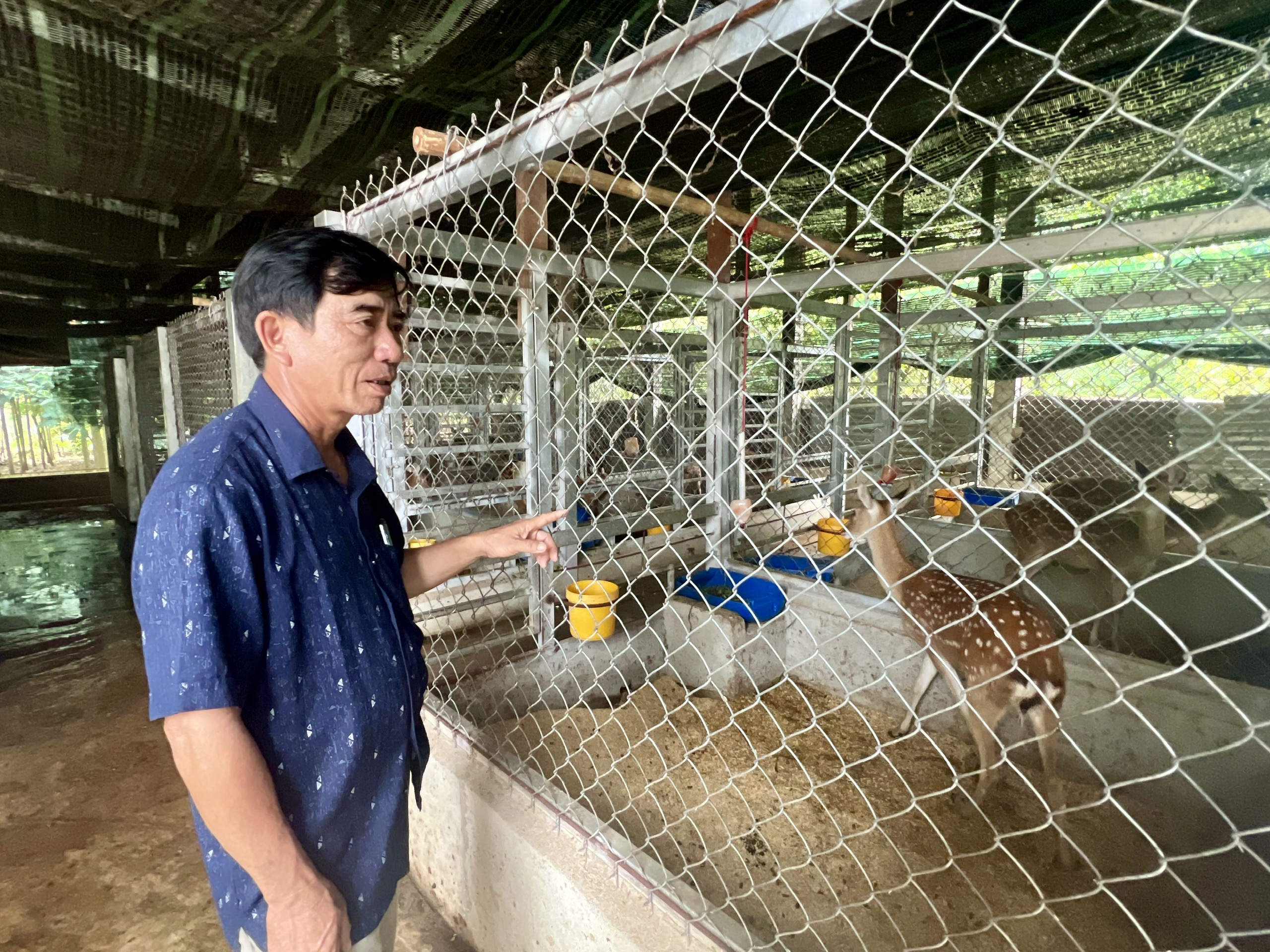 Mô hình trồng sầu riêng kết hợp nuôi hươu lấy nhung của anh Nguyễn Văn Thủy, ấp 8B, xã Lộc Thạnh