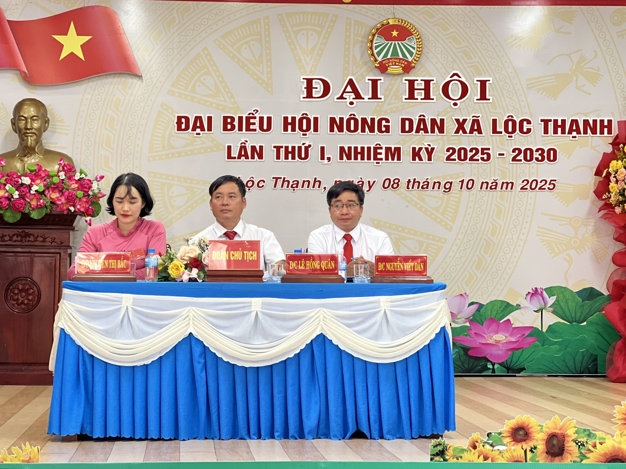 Đoàn chủ tịch điều hành đại hội đại biểu Hội Nông dân xã Lộc Thạnh lần thứ I, nhiệm kỳ 2025 – 2030