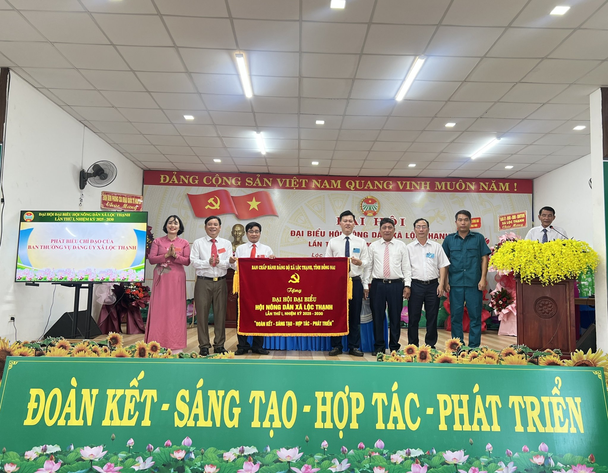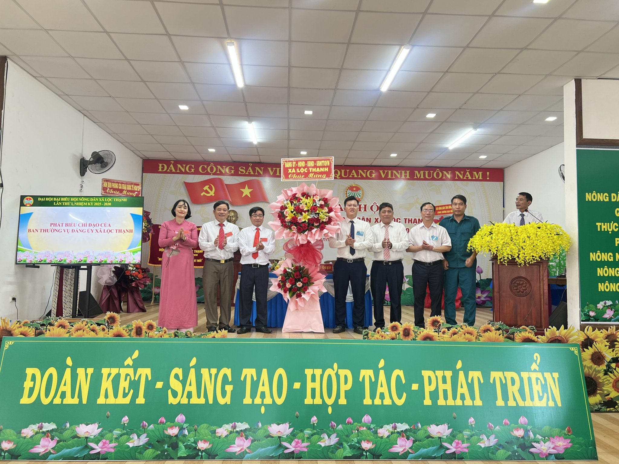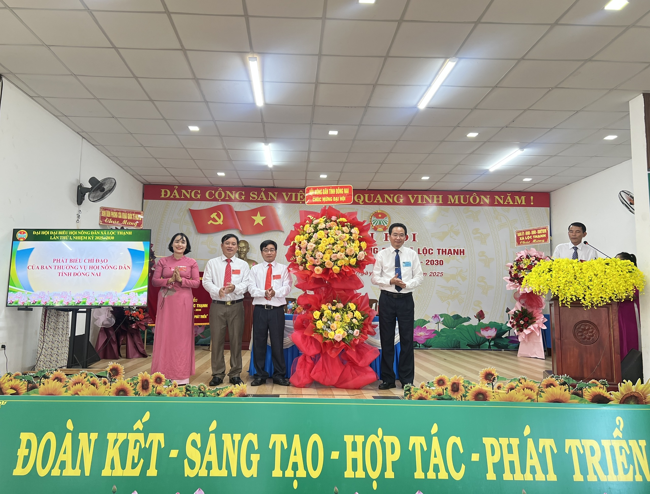 Lãnh đạo Hội Nông dân tỉnh Đồng Nai và Đảng ủy, HĐND, UBND, UBMTTQVN xã Lộc Thạnh đã có lẵng hoa và bức trướng tặng Đại hội
