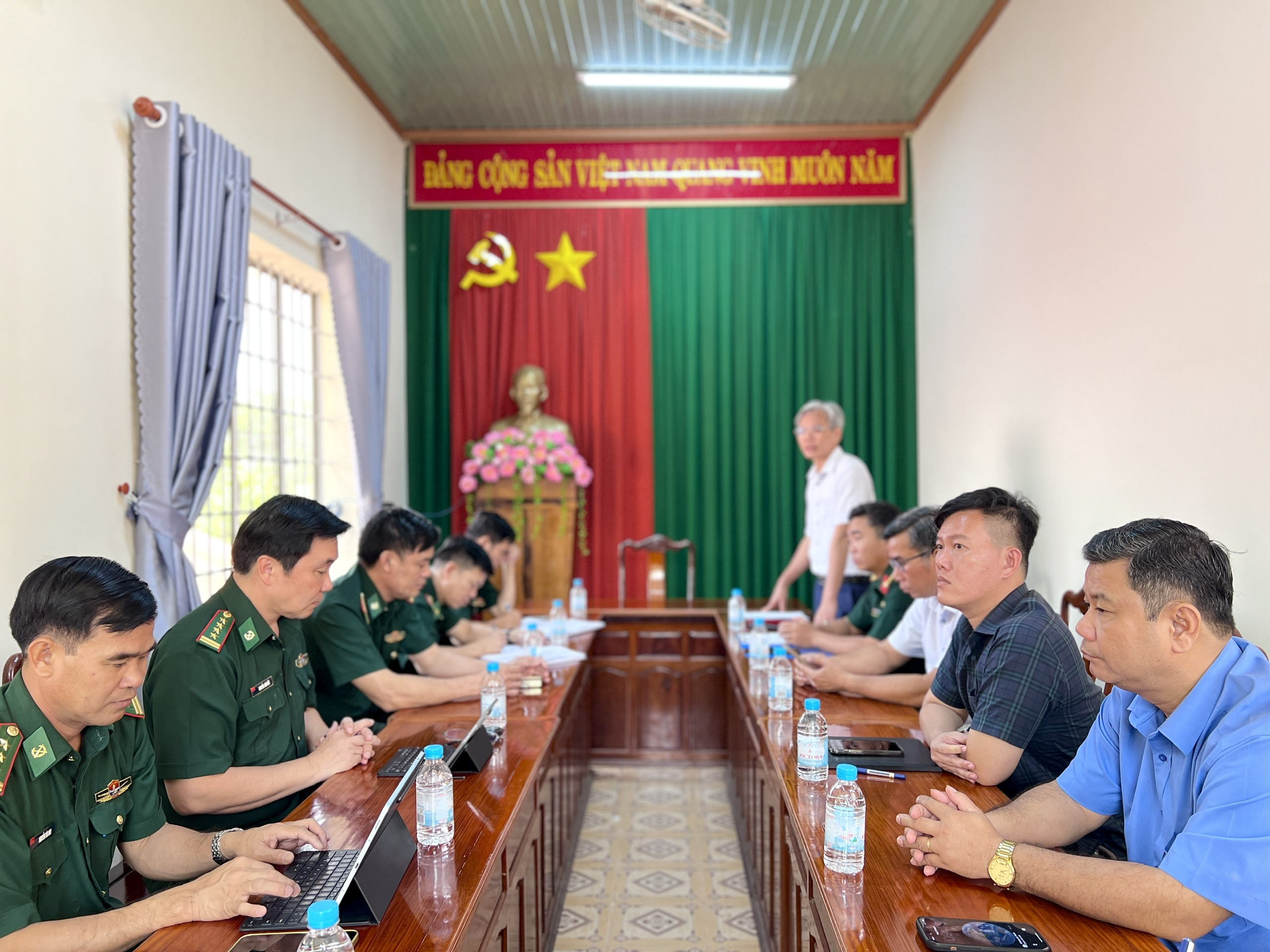 <span style="text-justify:inter-ideograph"><span style="line-height:114%"><span style="font-family:&#039;Times New Roman&#039;"><span style="font-size:14,0000pt"><span style="font-family:&#039;Times New Roman&#039;">Phát biểu tại buổi làm việc, Đại tá Nguyễn Anh Đức đánh giá cao kết quả tổ chức Ngày hội Biên phòng toàn dân năm 2026 cũng như công tác phối hợp giữa Đồn Biên phòng với cấp ủy, chính quyền địa phương trong quản lý, giữ vững an ninh khu vực biên giới. Đồng chí đề nghị cán bộ, chiến sĩ Đồn Biên phòng tiếp tục phối hợp chặt chẽ với địa phương đẩy mạnh tuyên truyền, chủ động triển khai đồng bộ các khâu chuẩn bị, góp phần tổ chức thành công cuộc bầu cử, bảo đảm an toàn, đúng quy định.</span></span></span></span></span><br />