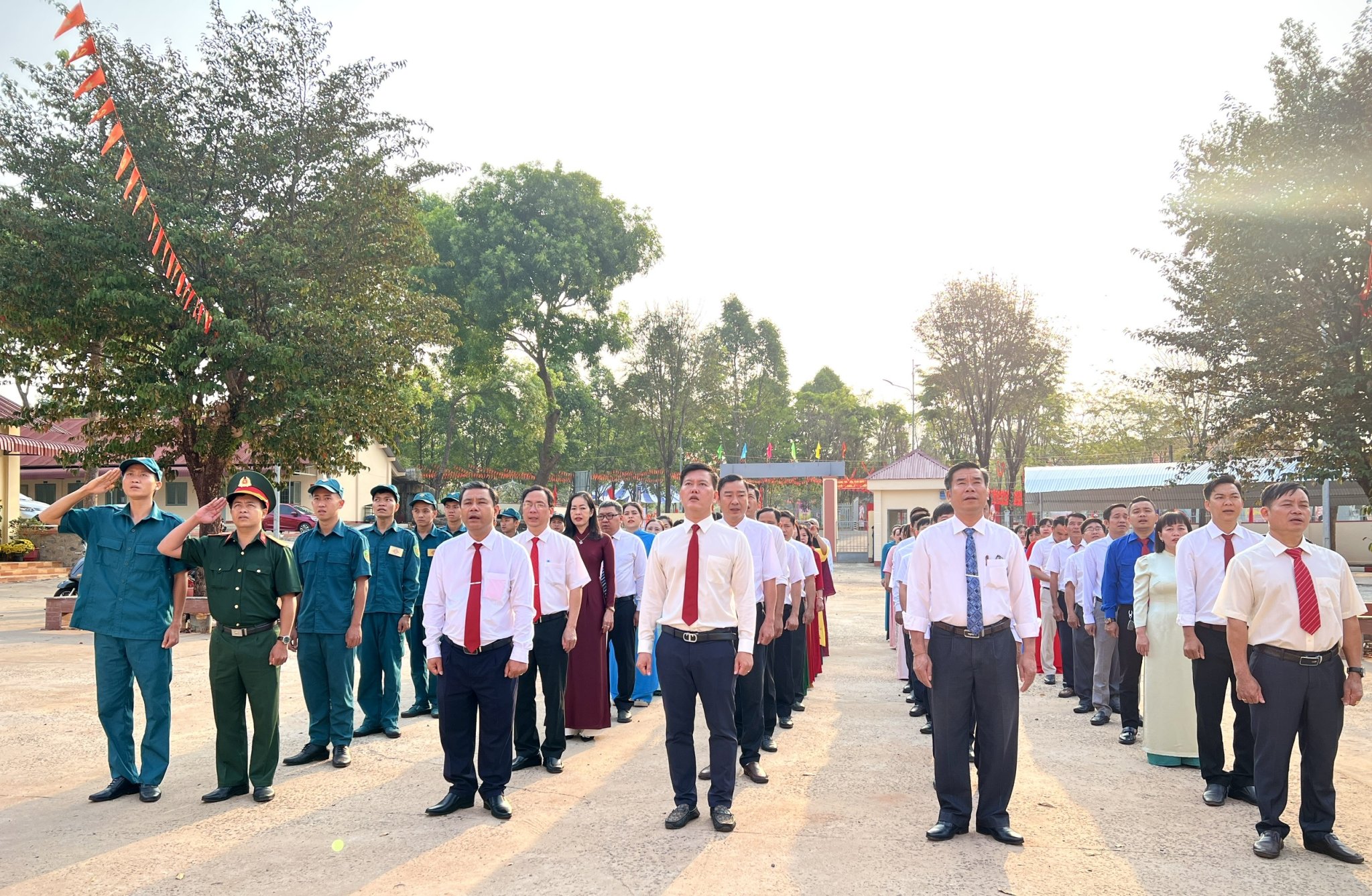 <span style="background:rgb(255, 255, 255);"><span style="vertical-align:baseline"><span style="line-height:114%"><span style="font-family:&#039;Times New Roman&#039;"><span style="font-family:&#039;Times New Roman&#039;"><span style="color:rgb(51, 51, 51);">Trong không khí trang nghiêm, cán bộ, công chức, viên chức, người hoạt động không chuyên trách và người lao động thuộc khối Đảng, chính quyền, Mặt trận và các đoàn thể xã đã thực hiện nghi thức chào cờ, hát Quốc ca, thể hiện tinh thần trách nhiệm và quyết tâm bước vào năm công tác mới.</span></span></span></span></span></span><br />