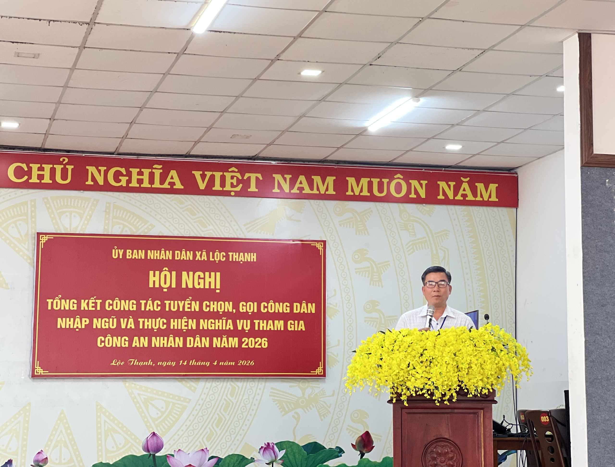 <div style="text-align: justify;"><span style="font-size:18px;"><span style="line-height:114%"><span style="font-family:&#039;Times New Roman&#039;"><i><span style="font-family:&#039;Times New Roman&#039;">Chiều ngày 14/4/2026, UBND xã Lộc Thạnh tổ chức Hội nghị tổng kết công tác tuyển chọn, gọi công dân nhập ngũ và thực hiện nghĩa vụ tham gia Công an nhân dân năm 2026. Đồng chí Nguyễn Văn Thảo, Phó Bí thư Đảng ủy, Chủ tịch UBND xã, Chủ tịch Hội đồng NVQS xã chủ trì hội nghị.</span></i></span></span><br />