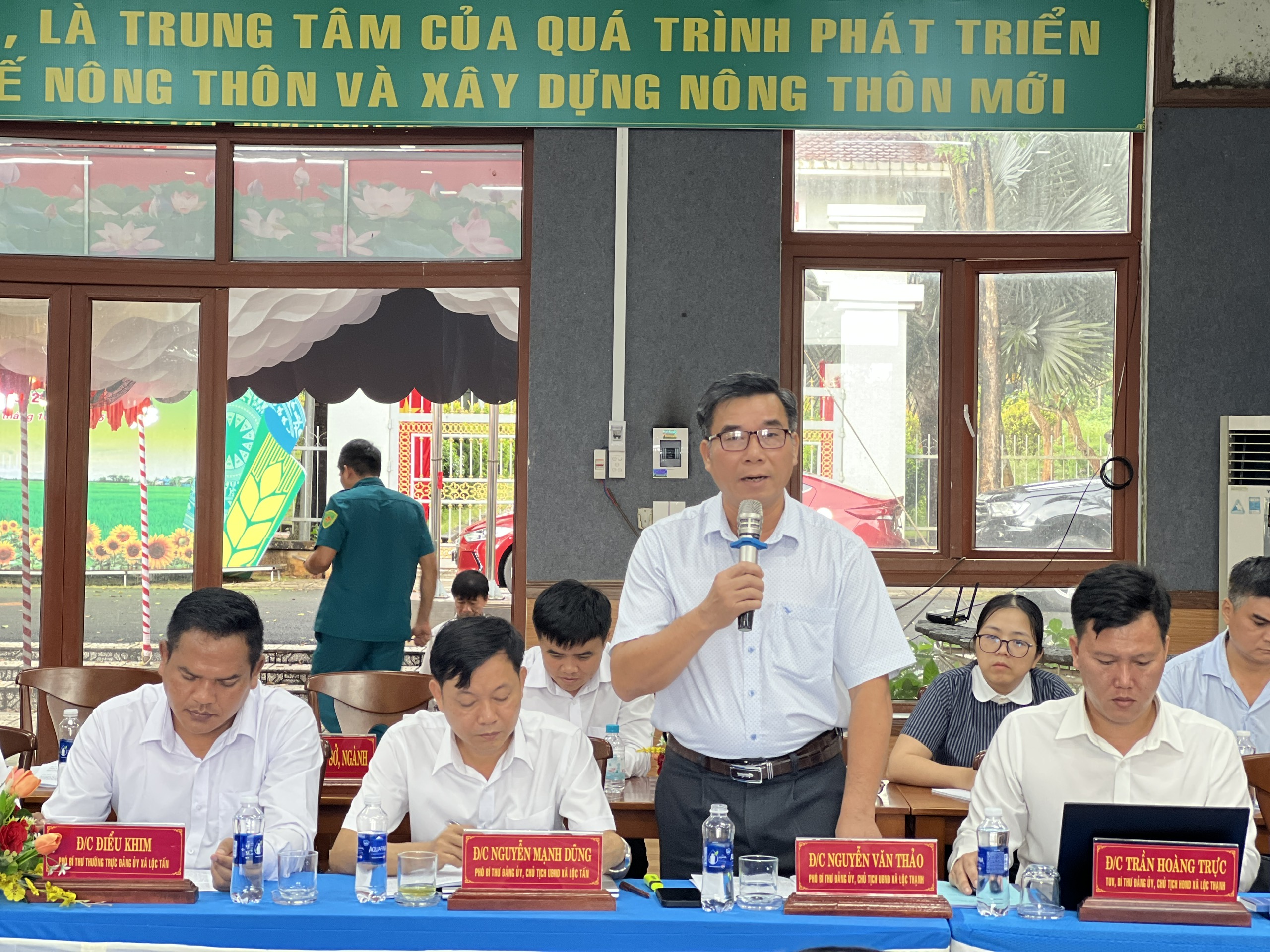 Phó Bí thư Đảng ủy, Chủ tịch UBND xã Lộc Thạnh Nguyễn Văn Thảo đại diện các xã biên giới báo cáo về tình hình thực hiện mô hình chính quyền địa phương 2 cấp thời gian qua