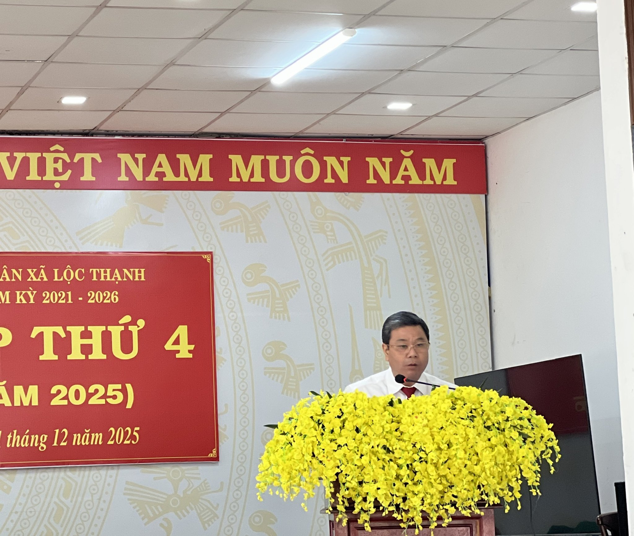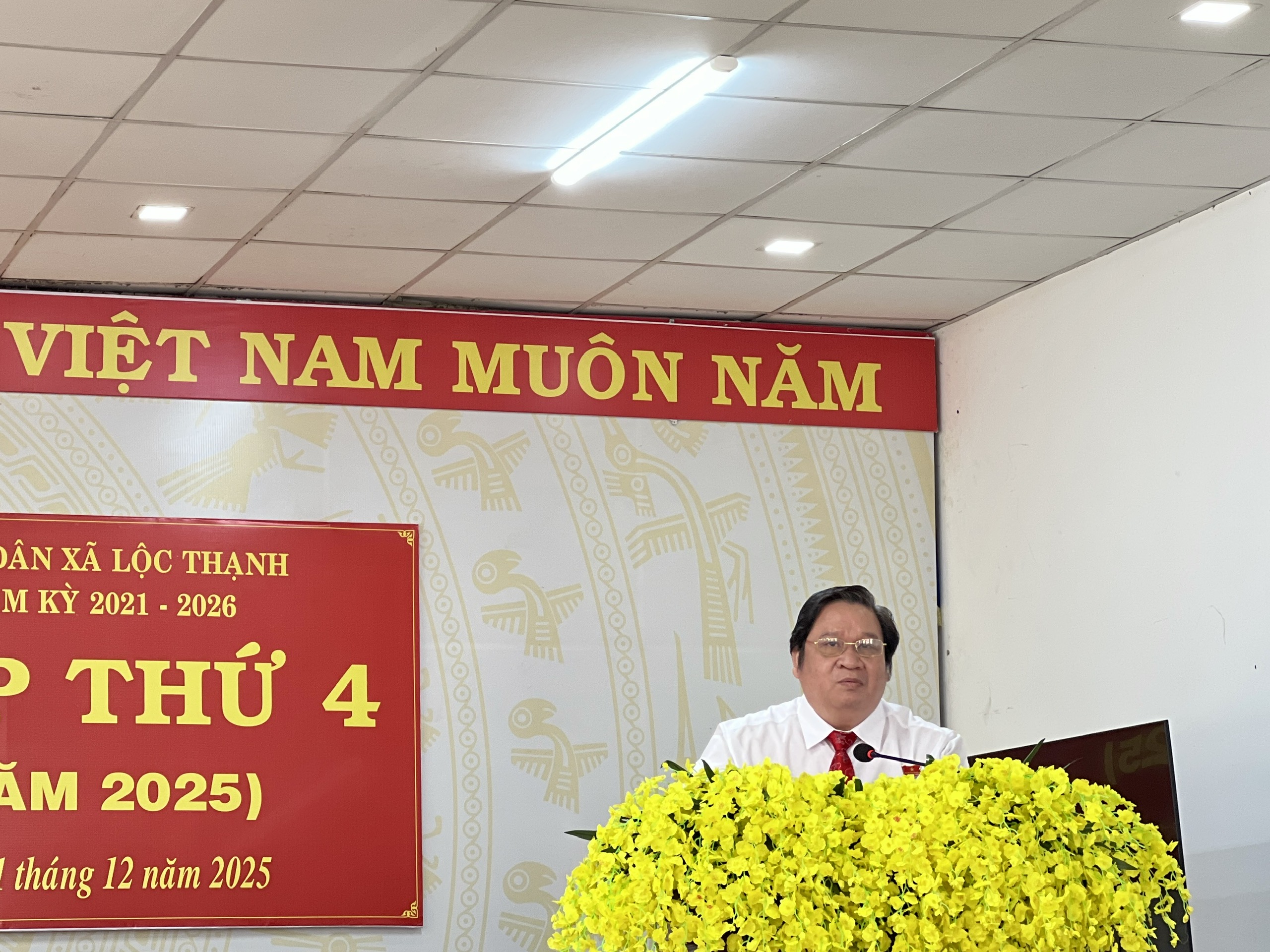 Sáng 31-12, Hội đồng nhân dân xã Lộc Thạnh tổ chức kỳ họp thứ 4 (kỳ họp cuối năm 2025) khóa IV, nhiệm kỳ 2021-2026. Ông Trần Hoàng Trực - Chủ tịch HĐND xã và bà Trương Hằng Hà - Phó Chủ tịch HĐND xã chủ tọa kỳ họp.