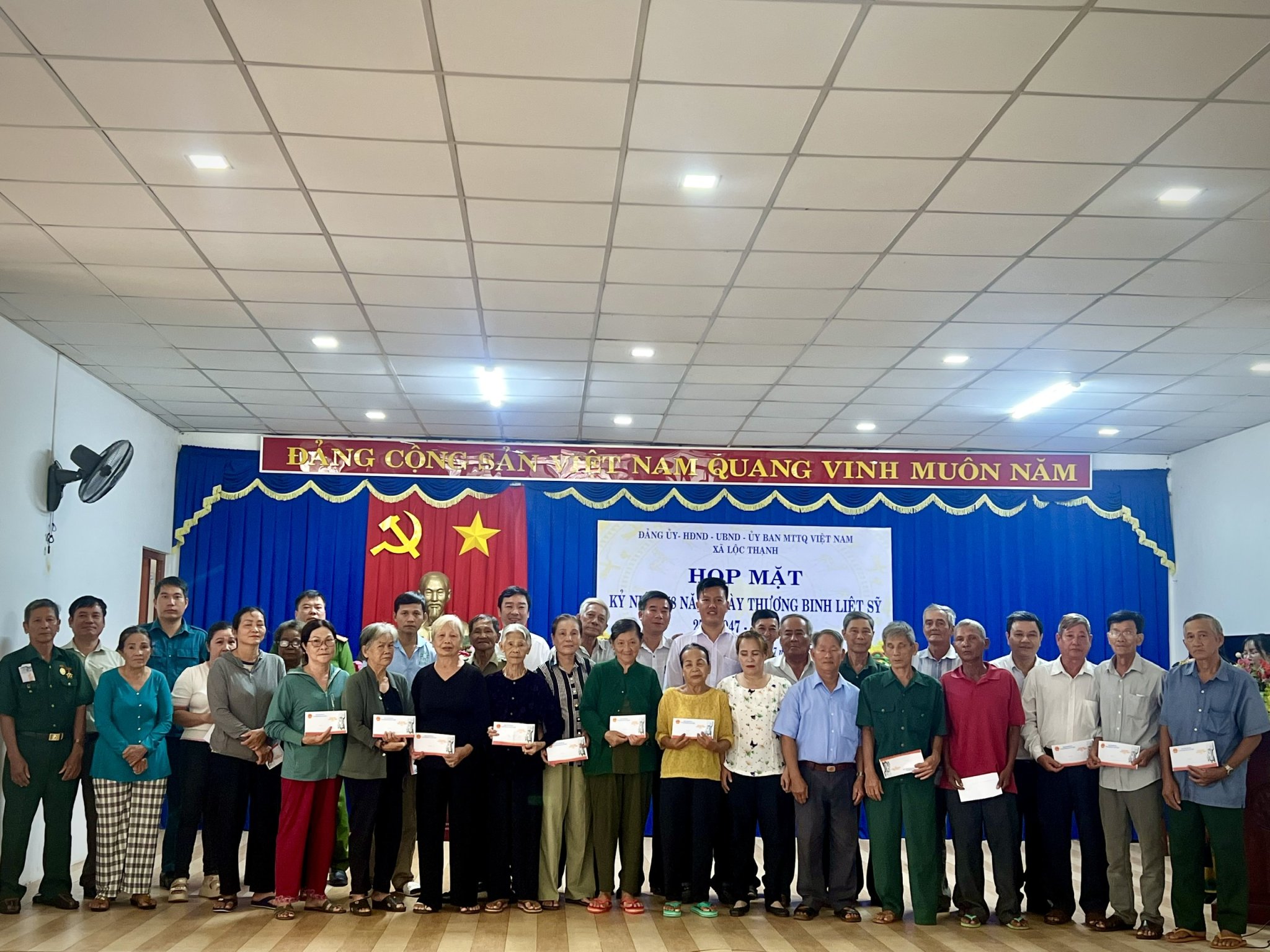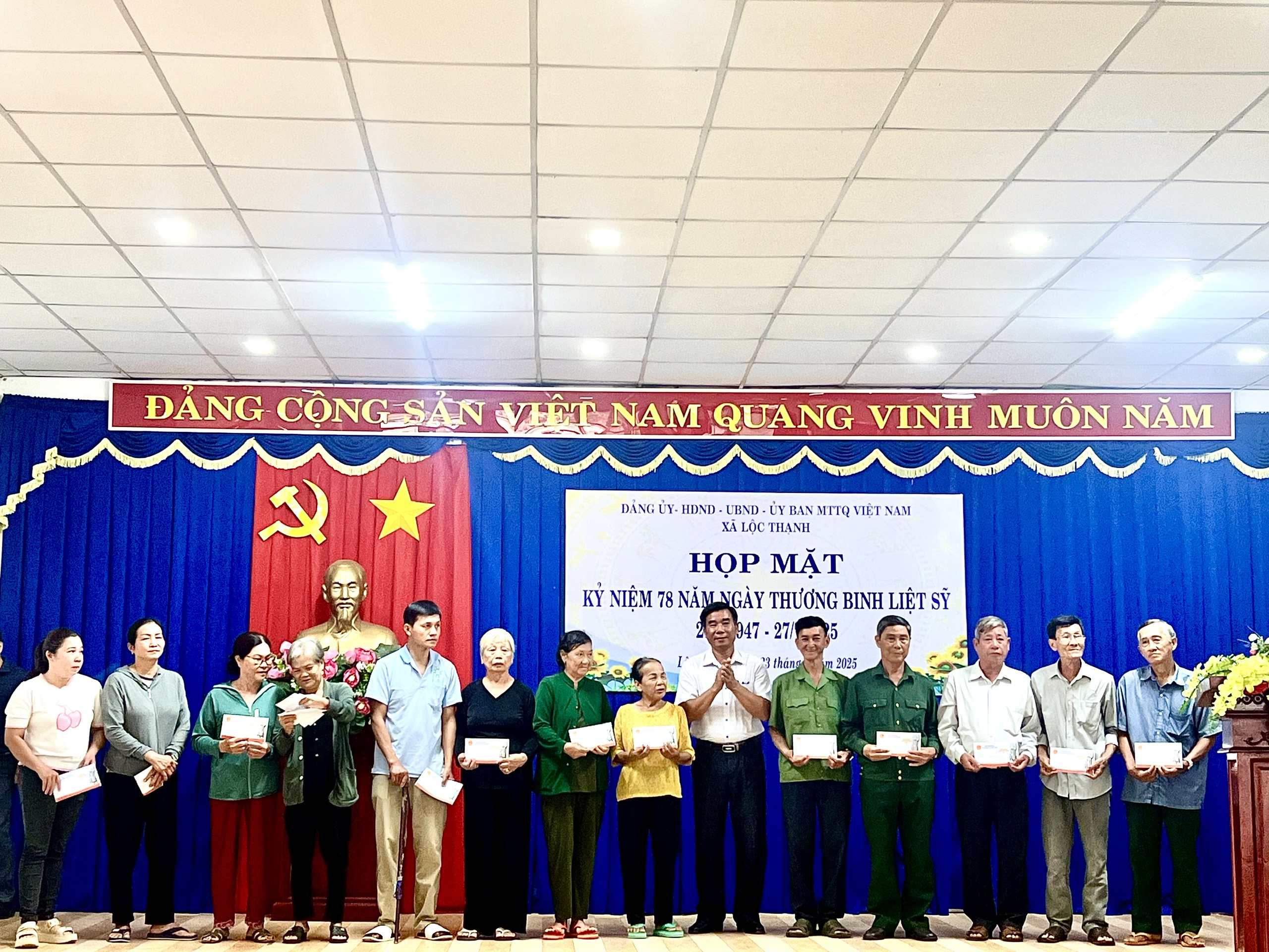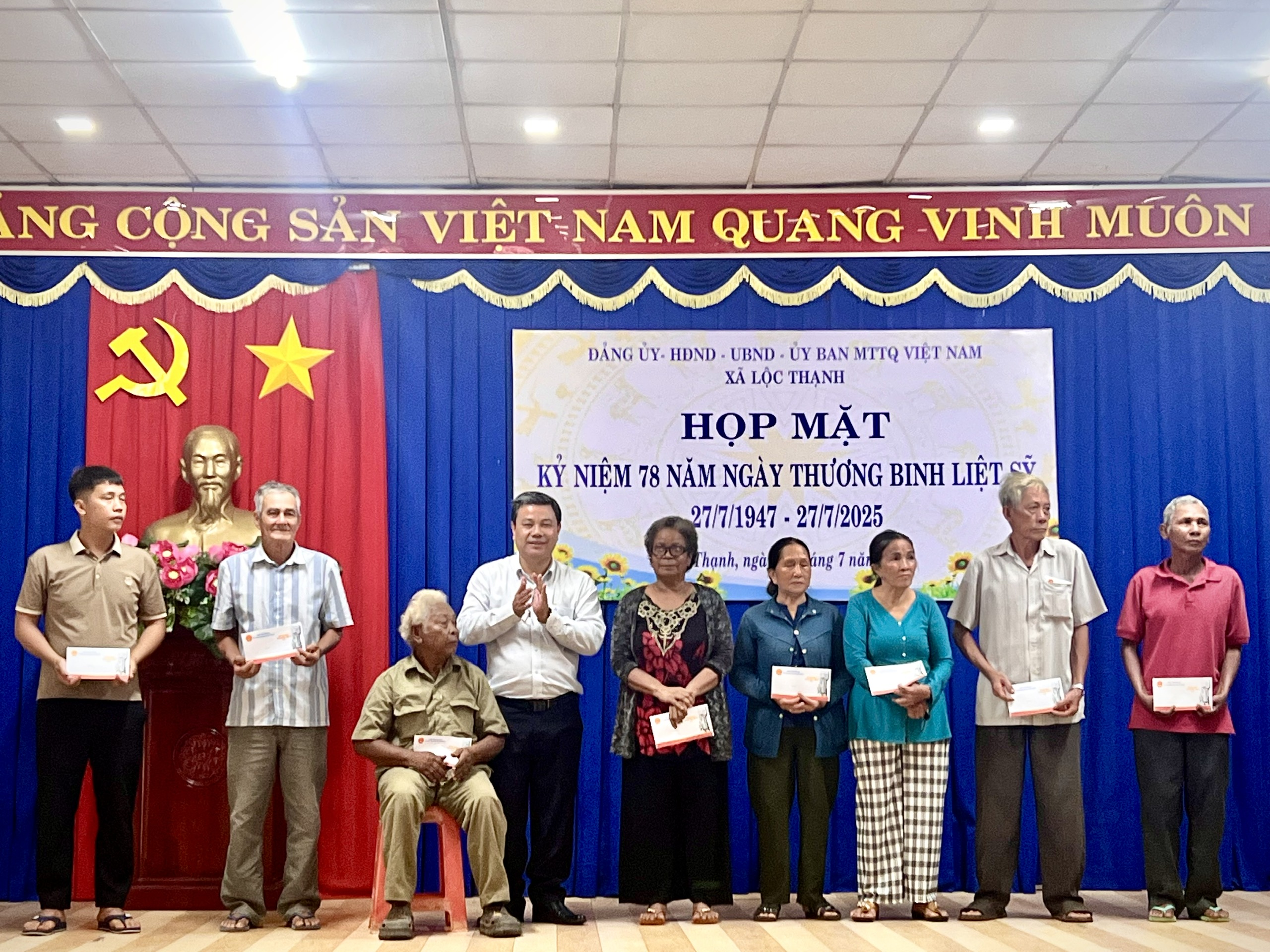Sáng ngày 23-7, Đảng uỷ – HĐND – UBND – UBMTTQVN xã Lộc Thạnh đã tổ chức họp mặt kỷ niệm 78 năm Ngày Thương binh – Liệt sĩ (27/7/1947 – 27/7/2025). Dự buổi họp mặt có các đồng chí trong Thường trực, Ban Thường vụ, Ban Chấp hành Đảng uỷ xã cùng lãnh đạo các cơ quan, ban, ngành, đoàn thể xã; các thương binh, bệnh binh và gia đình người có công với cách mạng trên địa bàn.